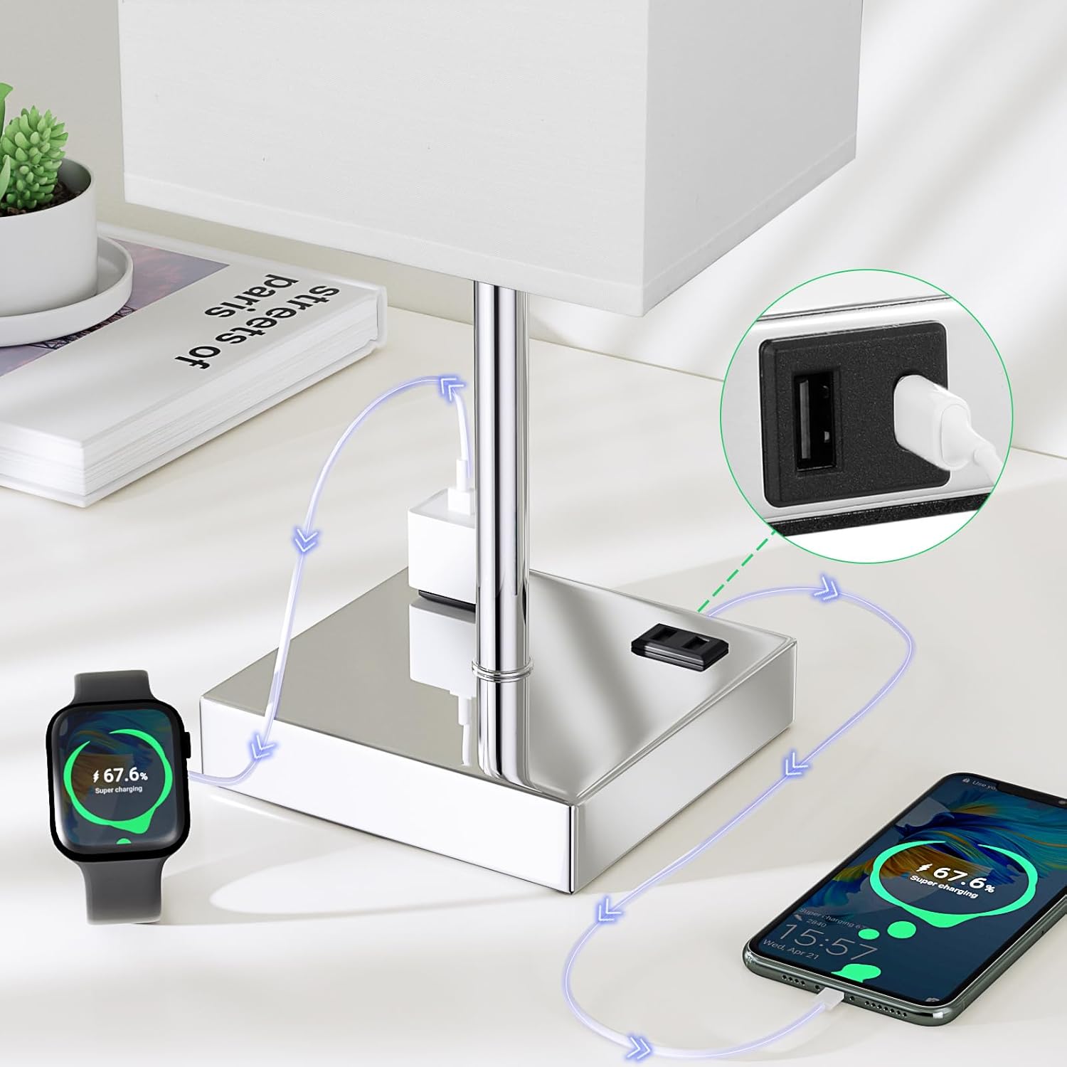 - 3-in-1 Fast Charing Lamp for Nightstand - This small bedroom lamp with usb port and outlet (USB A + type C ports + dual AC power outlets) for connecting and conveniently charging multiple devices. Whether the bed side light is on or off, it can quickly charge your smartphone, kindle, tablet, watch and other devices