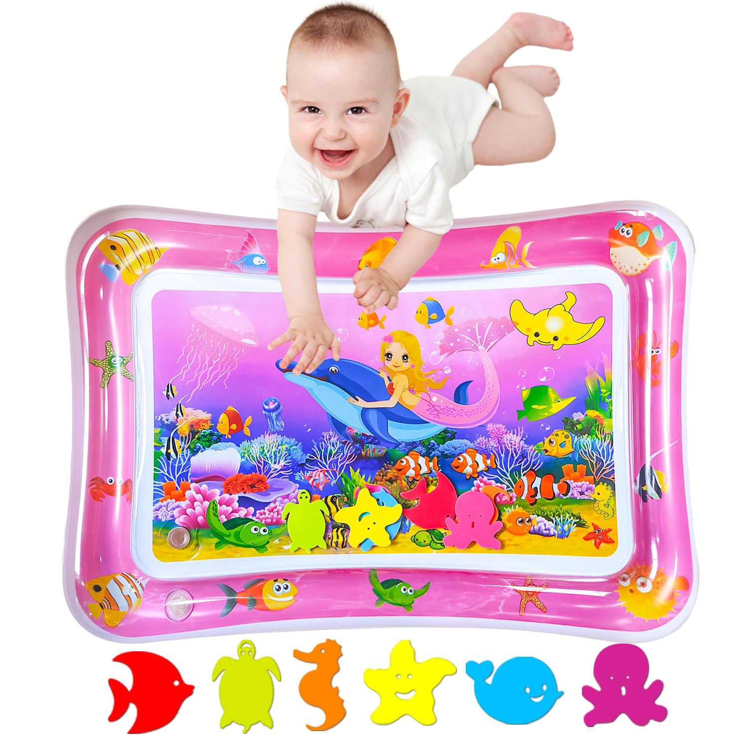 - 【Best Tummy Toy】: Enjoy the water time without getting wet! Your inflatable baby would be fascinated by the bright sea world graph and cute floating toys in the water. Parents can also have a fun time for watching the baby laugh and play.