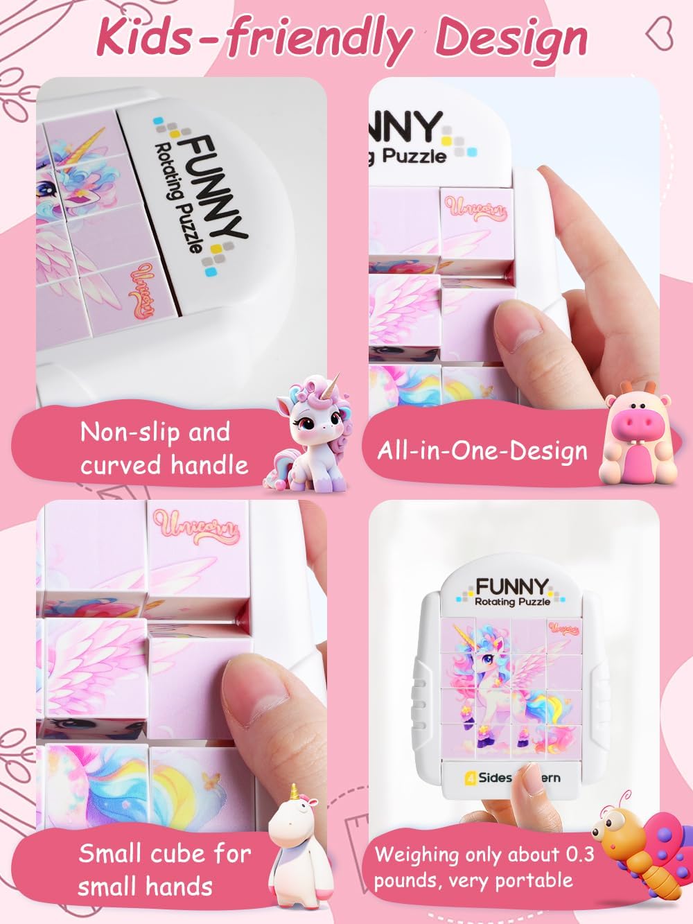 16-Piece Rotating Puzzles for Kids 4-6, Toddlers Puzzles 2-4, Road Trip, Airplane Activities Game, Travel Toys - Brain Teaser, Fine Motor Skills - Birthday Gifts Boys & Girls - Pink Alicorn