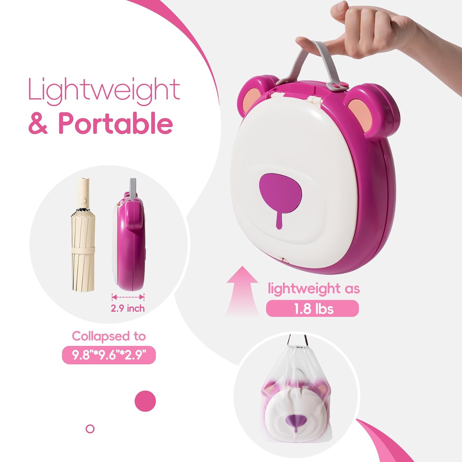 - 【Lightweight & Portable】: Travel potty for toddler measures a mere 9.8 x 9.6 x 7.8 inches when open, collapsing to a compact 9.8 x 9.6 x 2.9 inches when not in use. It is designed for space-saving, easily fits into a handbag or neatly under car seats