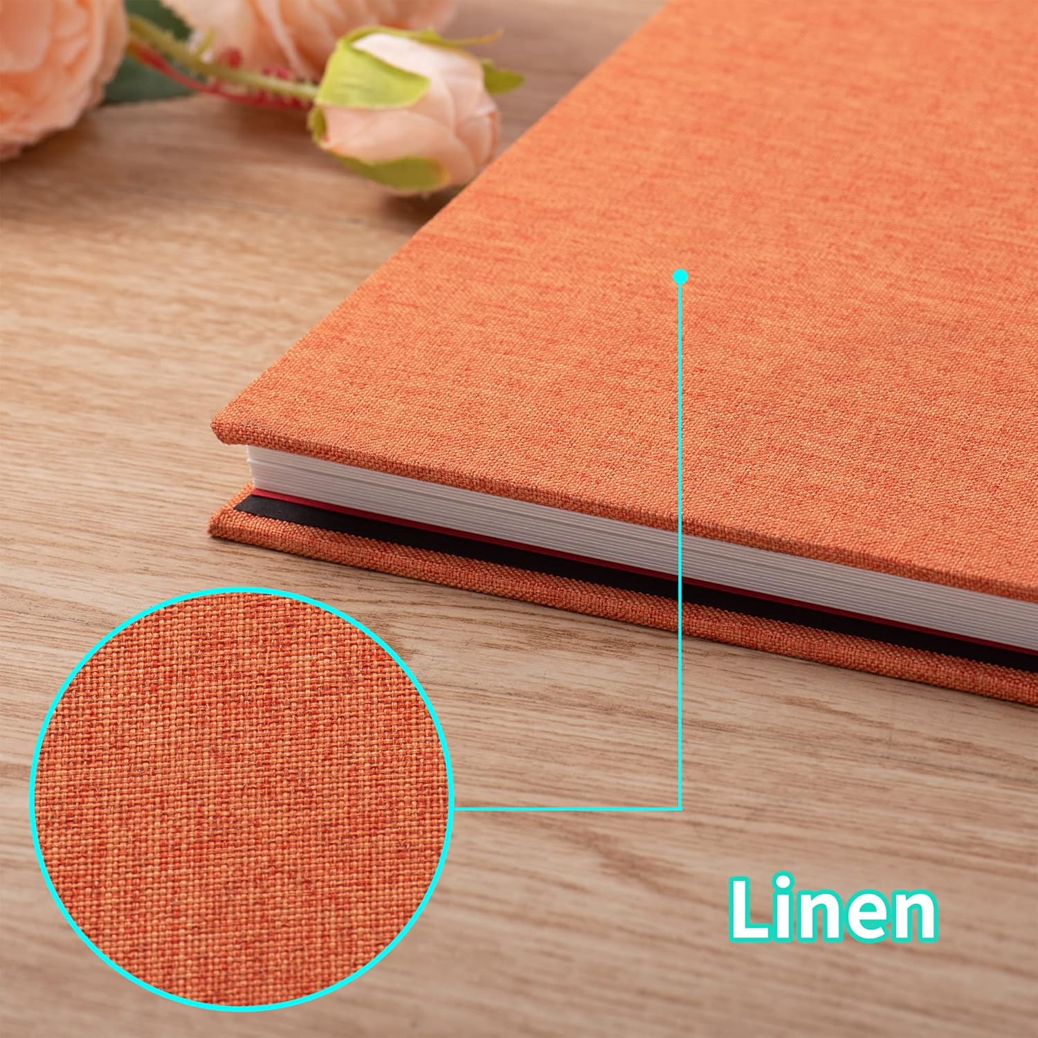 Photo Album Self Adhesive Scrapbook Album for 4×6 Pictures DIY Magnetic Linen Cover Album 30 Blank Pages Great Gift for Family, Wedding, Birthday, Christmas, Anniversary(Orange)