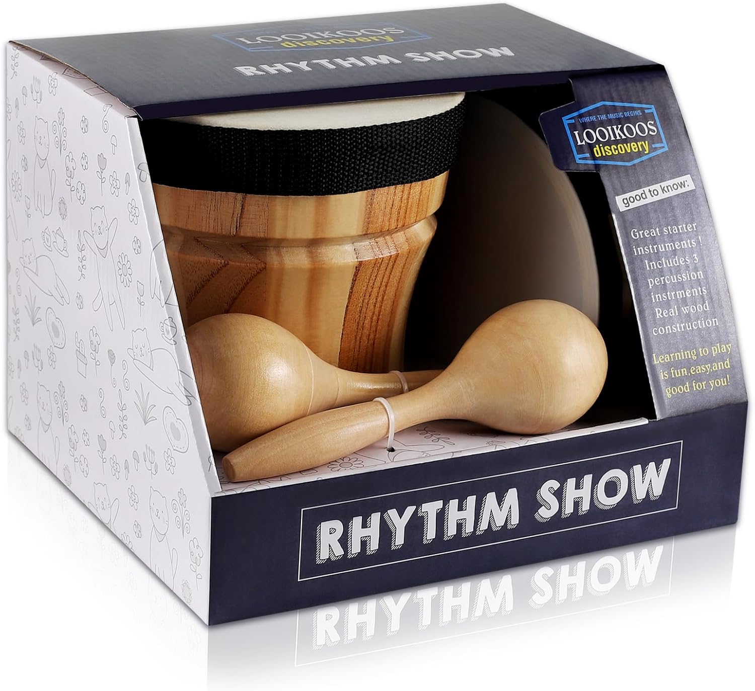LOOIKOOS Toddler Musical Instruments for Kids Ages 5-9 Montessori Toys for Toddlers 3-5 Wooden Percussion Instruments Drum set for Kids Gifts