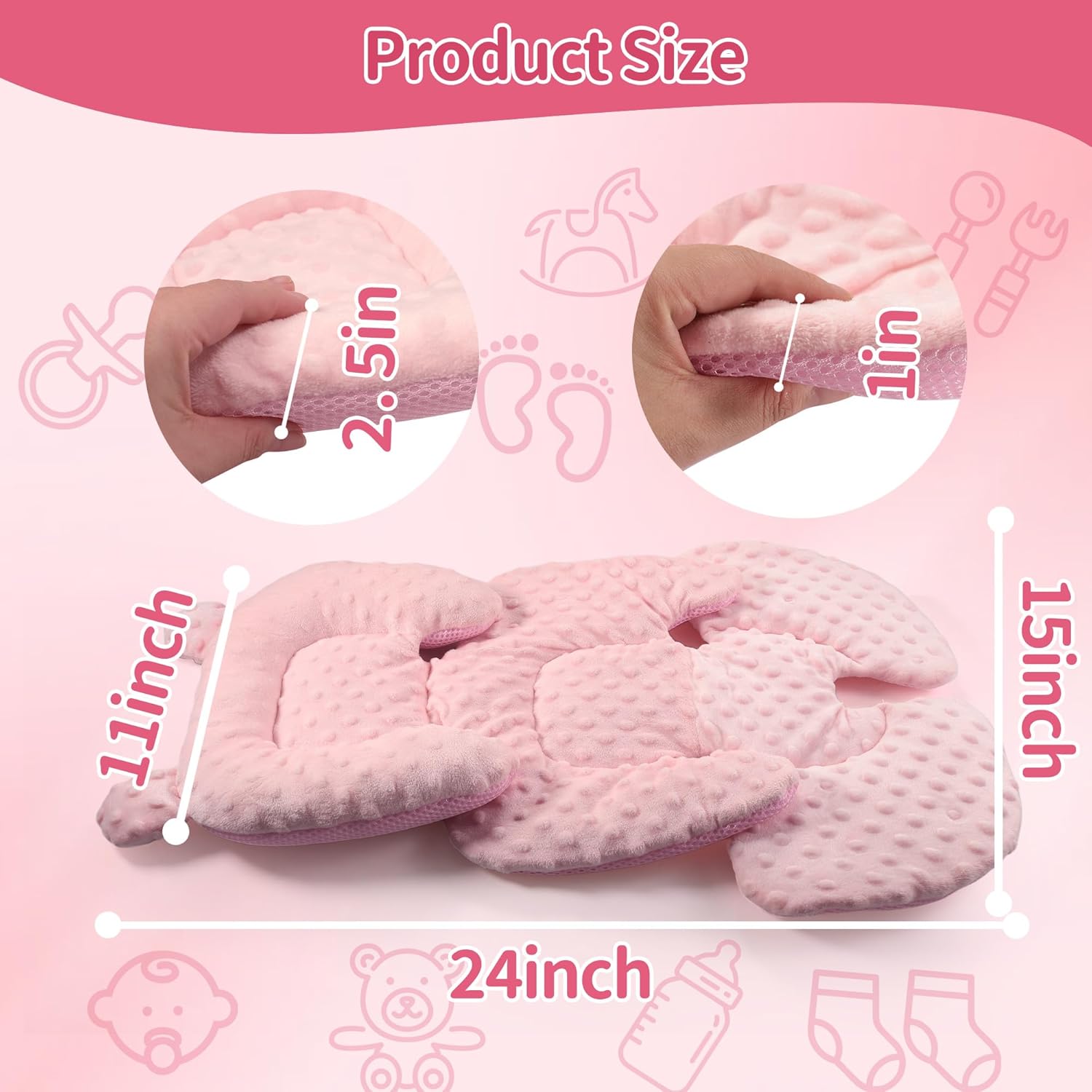 3in1 Reversible Carseat Head Body Support Newborn,3D Minnky Infant Car Seat Insert,Extra Soft Breathable Baby Car Seat Pillow Cushion Boys Girls,fit Stroller,Bouncer,Swing(Pink)