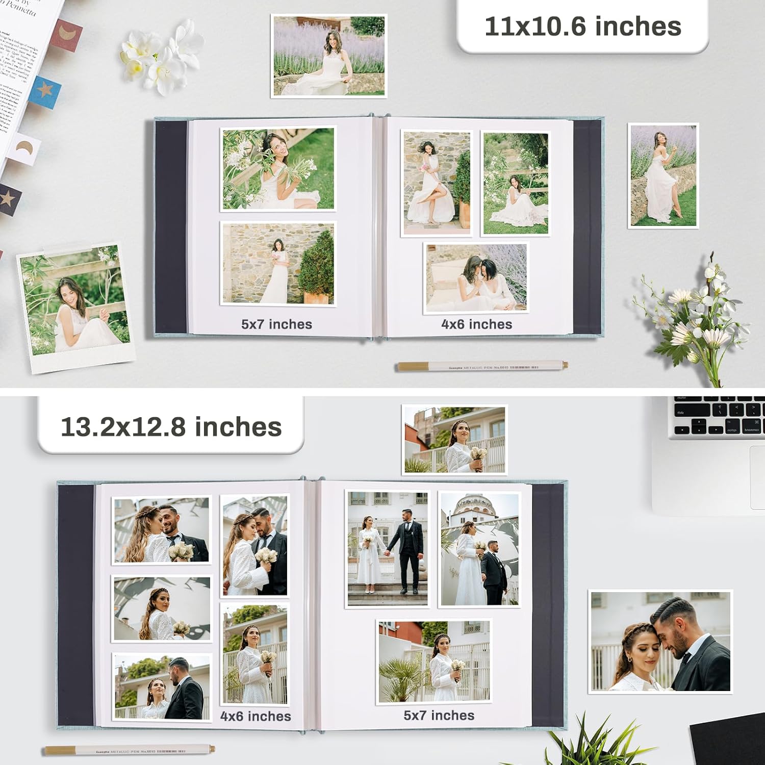 - 【SIZE】: With a cover size of 11x10.6 inches and inner page size of 10.6x8.8 inches, this self-adhesive photo album can hold photos of various sizes, such as 4x6, 5x7, 8x10, and more. 30sheets/60 pages, it can hold 180 photos of 4x6 inches or 60 photos of 8x10 inches.