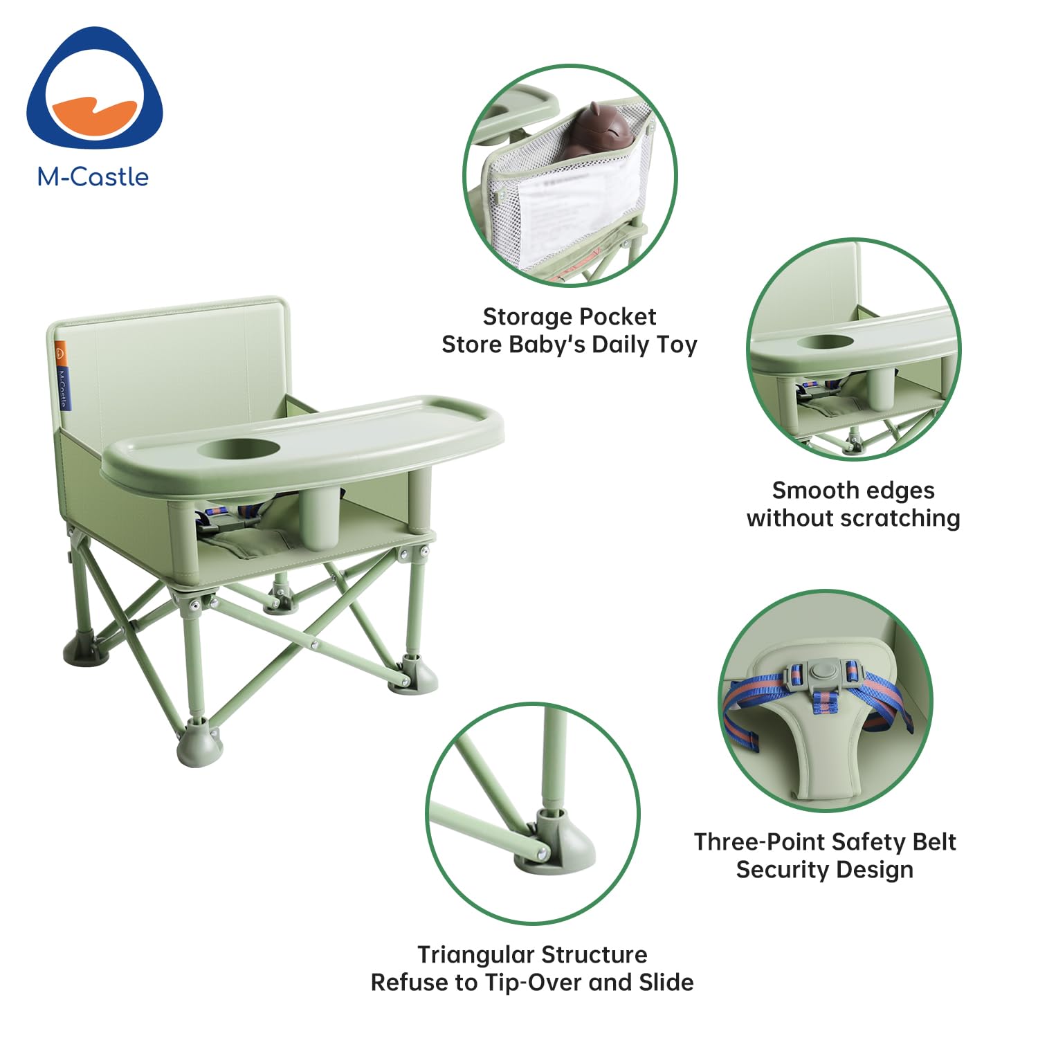 New Portable Travel Booster Seat with Tray|Foldable Infant Seat Booster Dining Chair|Great for Camping, Beach, Lawn|Toddler, Child Camping Chair 6 Months - 3 Years Old (Green)