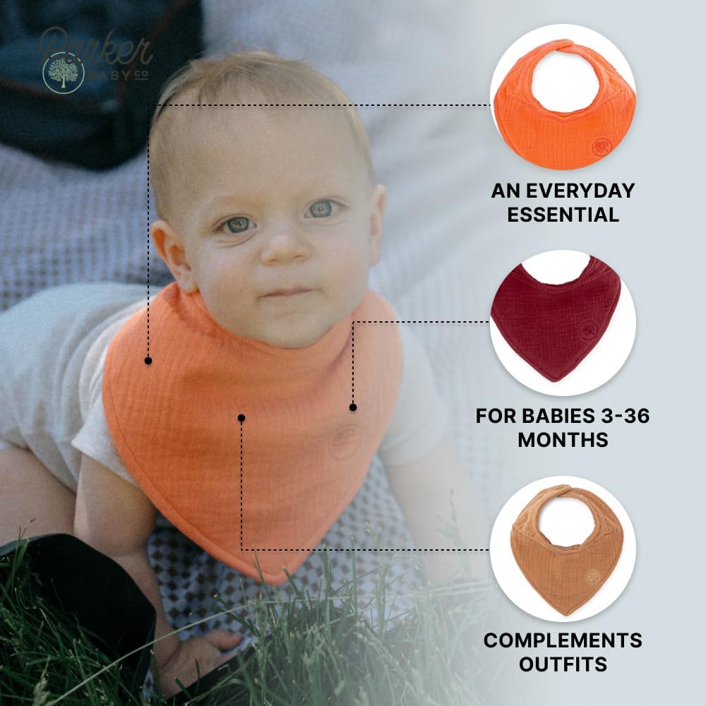 Parker Baby Muslin Bandana Drool Bibs | 100% Soft Muslin Cotton, Absorbent & Adjustable | Stylish Teething & Drooling Bibs