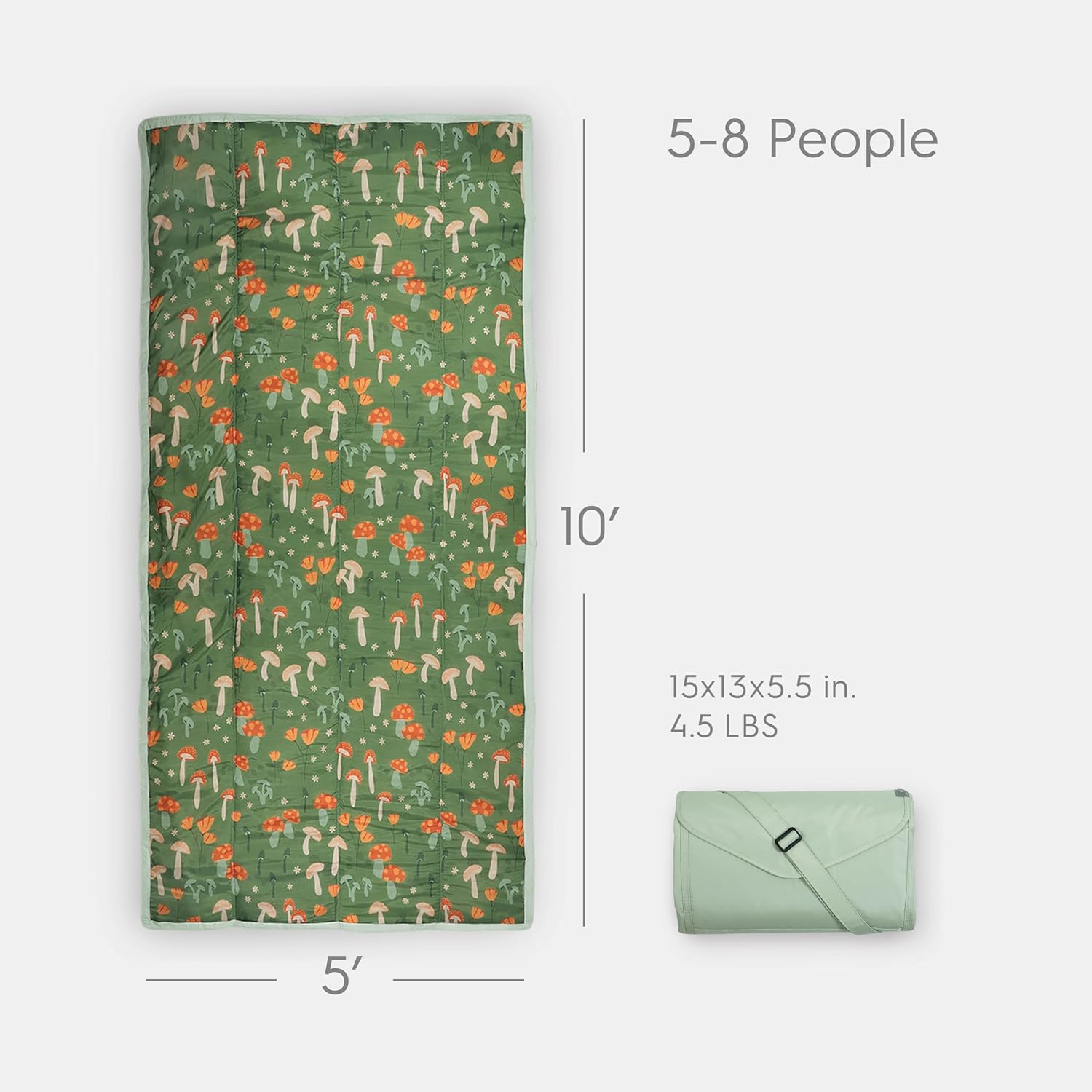 Little Unicorn 5'x10' XL Outdoor Family Picnic & Beach Blanket | Durable & Water-Resistant Fabric | Compact Fold & Easily Wipes Clean | Zipper Pocket (Woodland Mushroom)