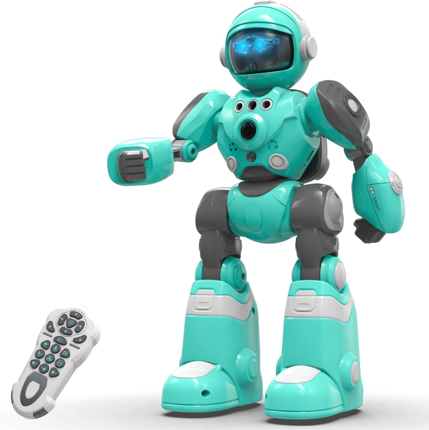 - [Robot Toy with Attractive Design] The flexible multi-joints, built-in music and dance moves of the robot encourage kids to move, dance, and sing with it. Besides, this RC robot has colorful LED eyes and you can choose your favorite color. It's a perfect toy for building creativity, imagination, and social skills.
