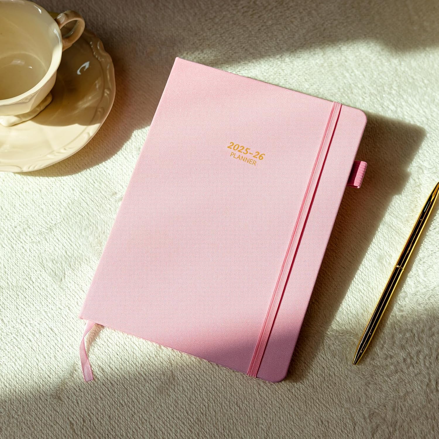 Getink 2025-2026 Linen cover Planner Weekly & Monthly Daily Agenda Book,2025-2026 To Do List Notebook with Colorful Monthly Tabs, Inner Pocket, Elastic Closure (Pink,5.5 * 8.5)