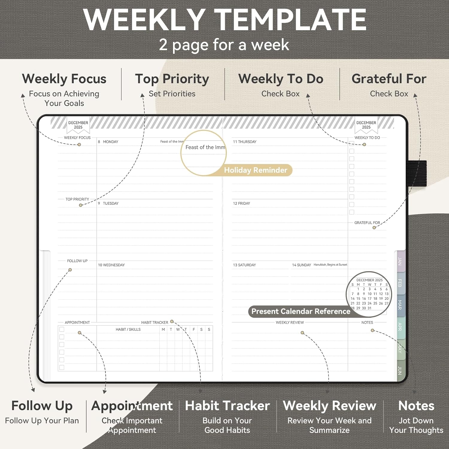 - Comprehensive Year-Round Planning: Stay organized from July 2025 to June 2026 with clear monthly and weekly pages. Includes sections for personal information, yearly overview, goal setting, important dates, holidays, contacts, and notes for efficient time management.