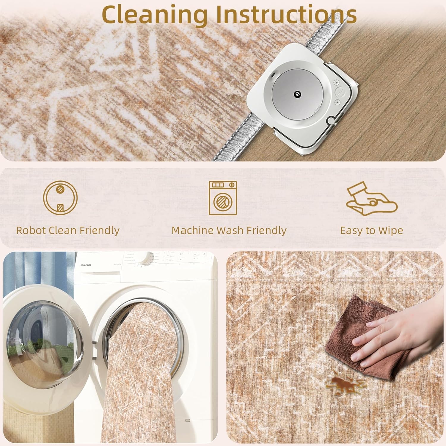 - Machine Washable Rug: Our 4x6 washable rug have stain and splash-resistant properties. Use a broom or vacuum cleaner to Clean up or hair for daily care. The rug can be washed directly in the washing machine in cold water, making cleaning a breeze.(Please remember not to use bleach!)