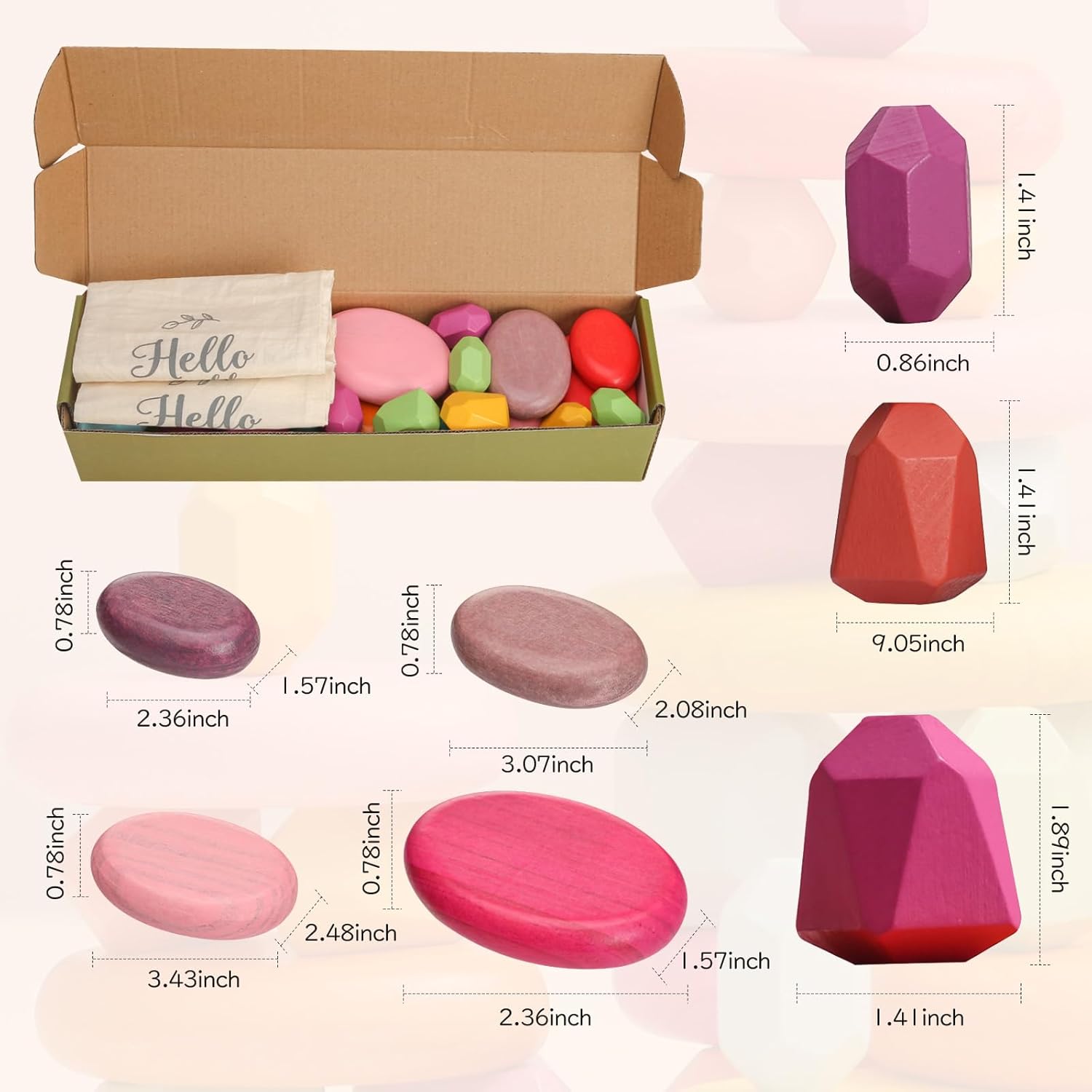 OESSUF Stacking Rocks 26Pcs Stacking Blocks Balancing Stones Wooden Building Toys Wood Stone Stacking Game for Toddler Sorting Preschool Educational Montessori Stacking Rocks for Kids