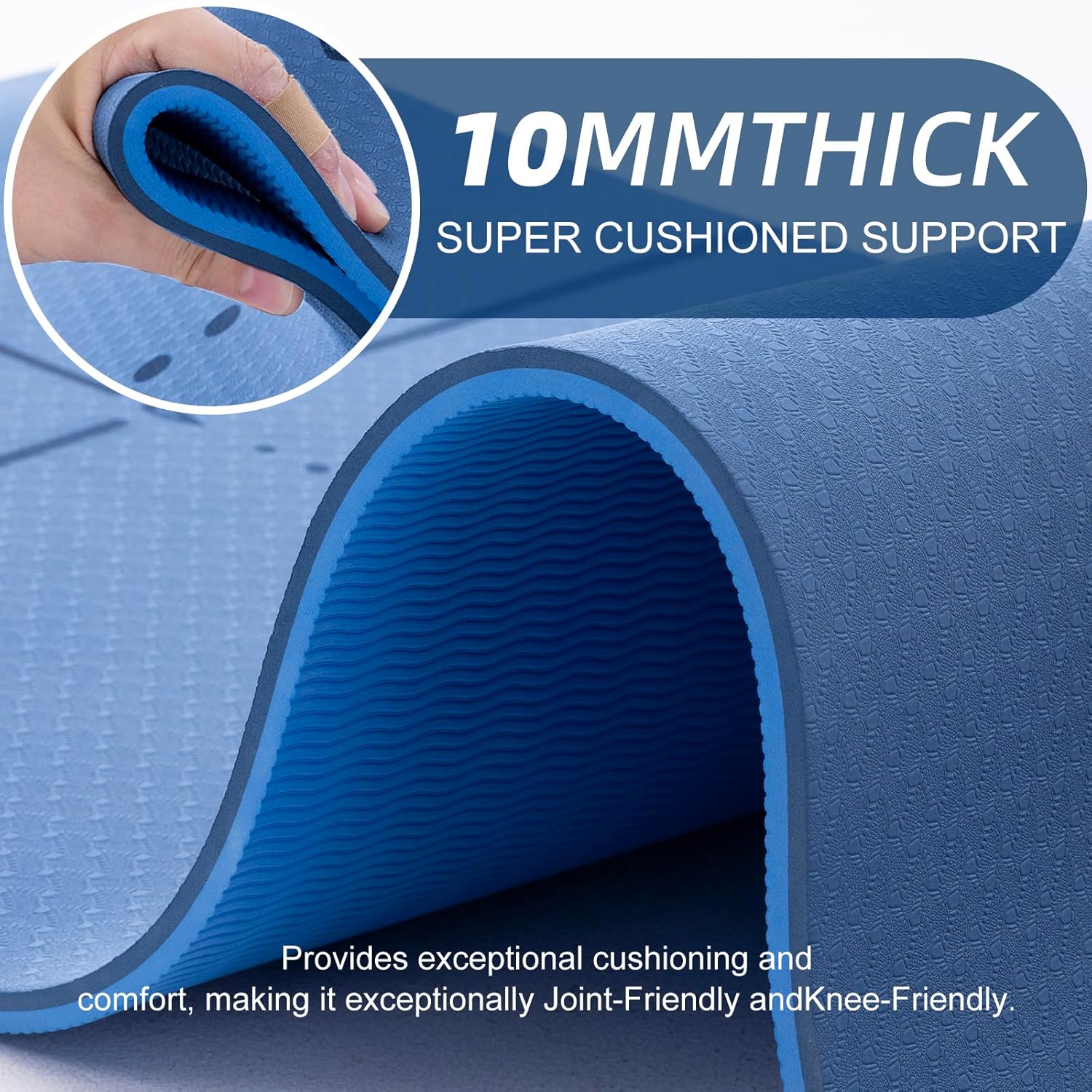 - Extra Thick Cushioning: This padded yoga mat features a 10mm thickness, which can greatly increase the comfort and support of your practice, and helps reduce joint pressure. Ideal for restorative or yin yoga and exercises that require holding poses for extended periods