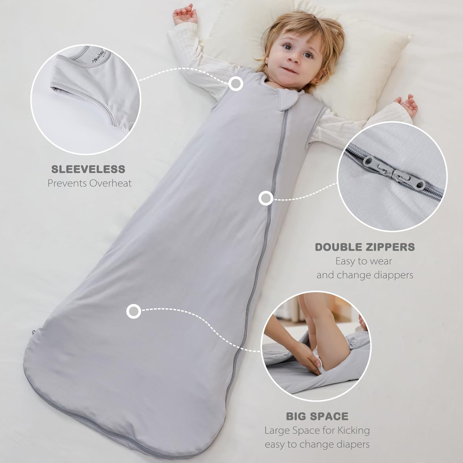Mosebears Unisex Baby Sleep Sack 1.0 TOG, Supersoft Rayon Made from Bamboo Wearable Blanket with 2-Way Zipper (Light Grey,18-36 Months)