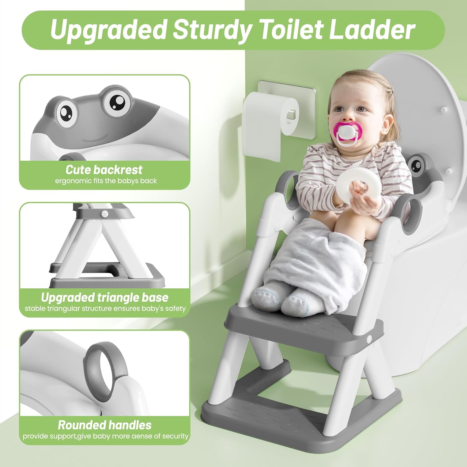 Frog Potty Training Seat, Upgrade Toddler Toilet Seat for Kids Boys Girls, 2 in 1 Potty Training Toilet for Kids, Splash Guard Anti-Slip Pad Step Stool