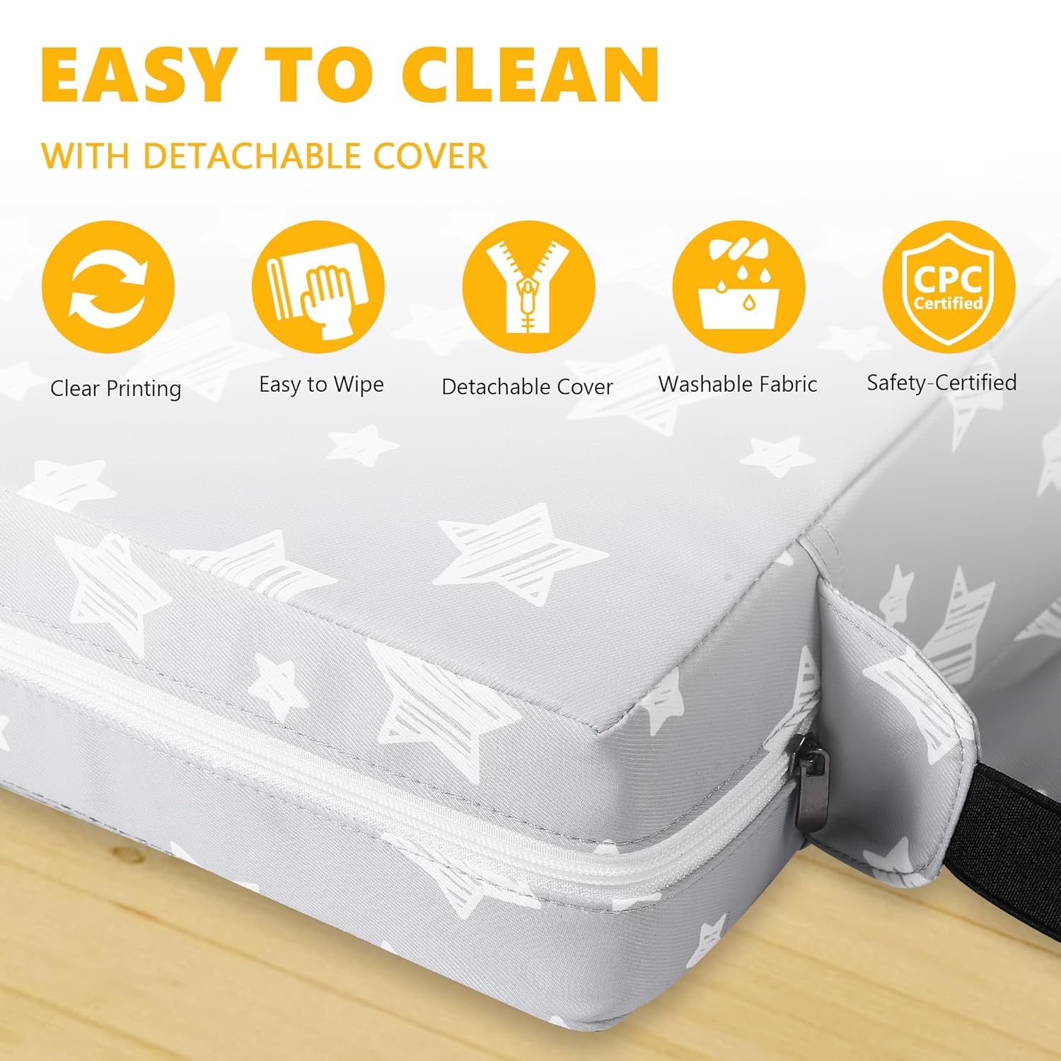 - 【Detachable for Easy Washing】The booster seat cover can be removed by unzipping, making cleaning a breeze. When spills or stains occur, simply remove the seat cover and toss it in the washing machine. The removable cover ensures that you always keep the seat clean and hygienic, providing a fresh and pleasant seating experience for your baby.