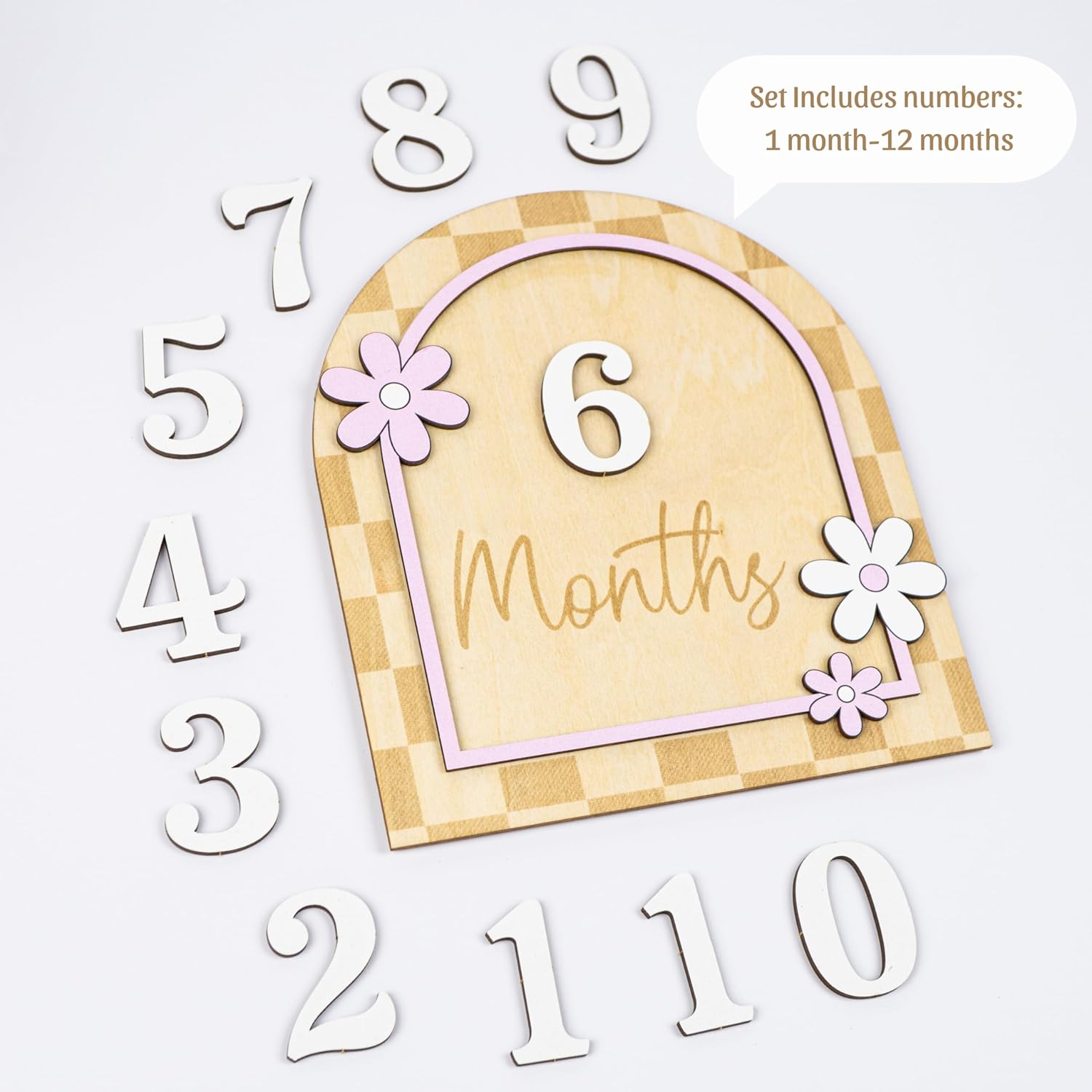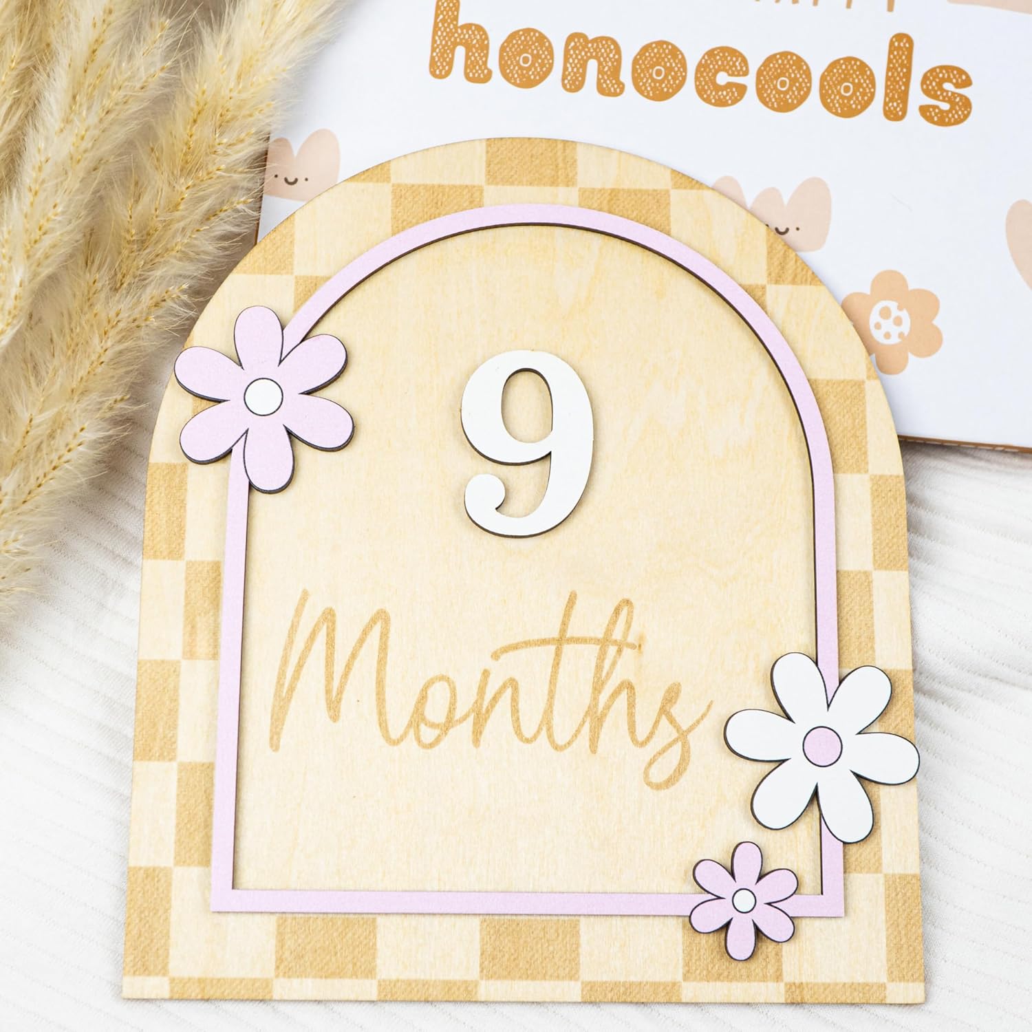 Daisy Flower Baby Monthly Milestone Cards - Wooden Monthly Milestone Double Sign - Newborn Photography Props to Document Your Baby´s Growth - Baby Announcement Sign (B10)