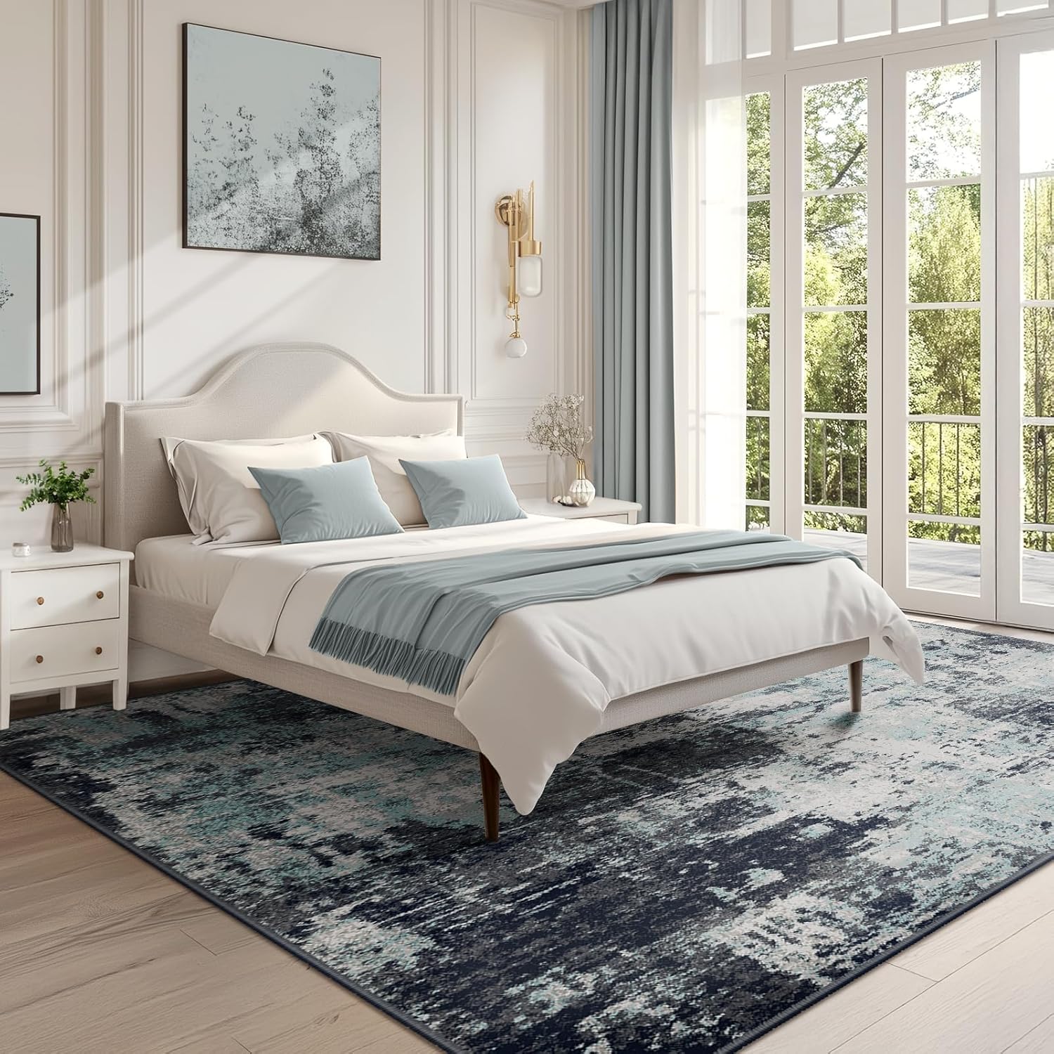 Washable Area Rugs 9'x12' Non-Slip Modern Abstract Soft for Living Room Entryway Bedroom Nursery, Print Pattern, Blue Black Teal