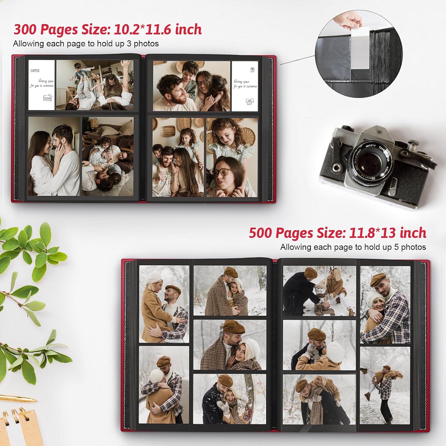 - 🥰Large Capacity: Includes 100Pcs inner sleeves with 800Pcs pockets. The cover size is 13.07 "Lx11.89 "Wx2 "H, the inner photo page size is 12.72 "Lx10.75 "W, each pages can hold 5Pcs 4x6 photos.