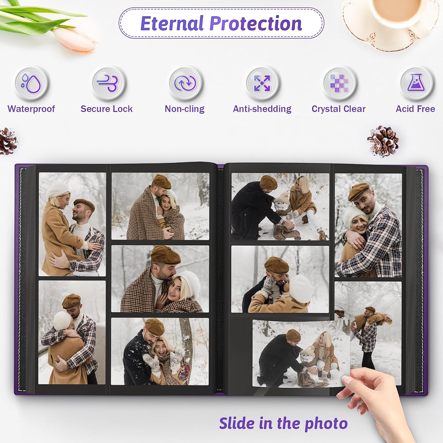 - 🥰Large Capacity: Includes 100Pcs inner sleeves with 800Pcs pockets. The cover size is 13.07 "Lx11.89 "Wx2 "H, the inner photo page size is 12.72 "Lx10.75 "W, each pages can hold 5Pcs 4x6 photos.