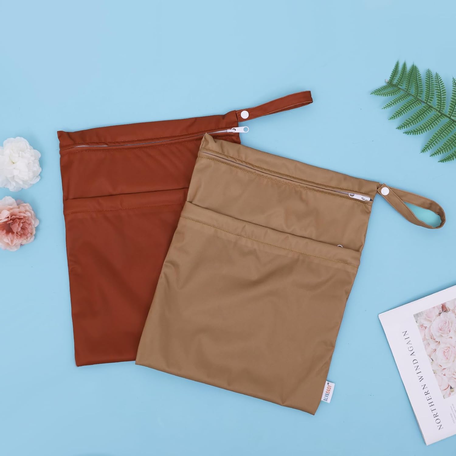 - Fashion , Reusable&Waterproof , High quality -A trim and attractive design. ALVABABY wet/dry bag are made from waterproof 100% polyester, put dirty cloth diapers in a wet bag. Comes with handle for easy carrying or attaching to your diaper bag or stroller.
