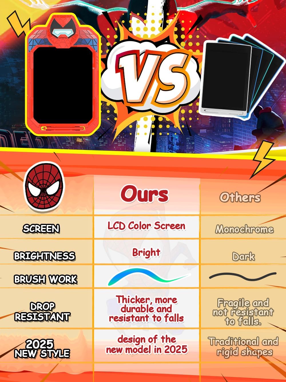 - 【With a cool and stylish design】 featuring our iconic heroes like Spider-Man, Captain M, Mecha Heroes in action, and the mighty Hulk, this toy is an ideal learning companion for boys and girls aged 3, 4, 5, and 6. It serves not only as a graffiti board brimming with creative inspiration but also as a painting board full of endless fun.