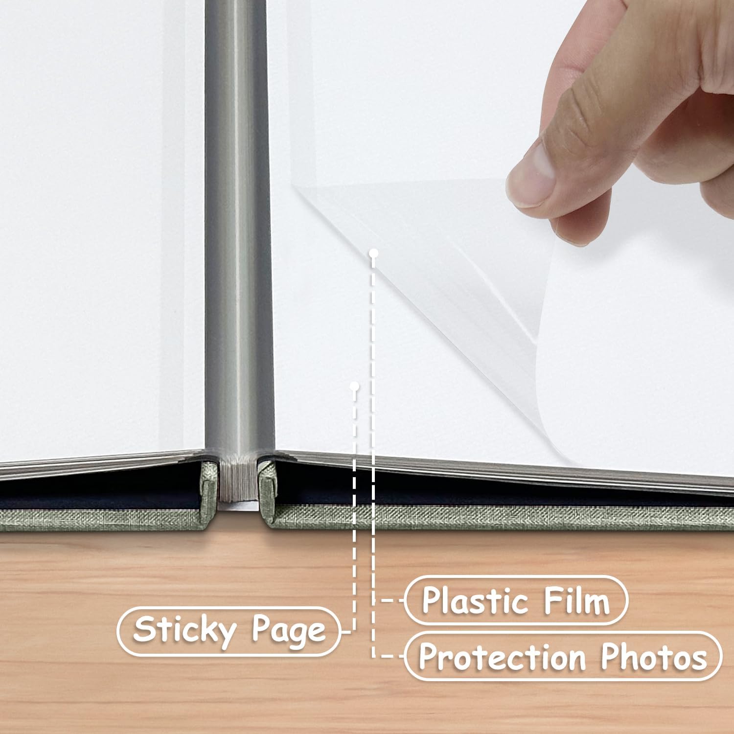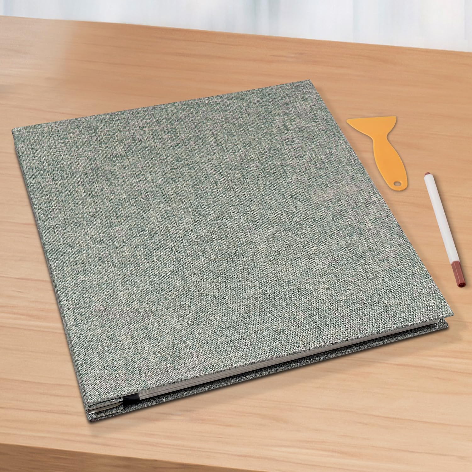 Large Photo Album Self Adhesive Scrapbook Album for 4×6 5×7 8×10 Pictures DIY Magnetic Linen Cover Album 40 Pages for Family Wedding Gifts with Metal Pen and Plastic Board, Light Green