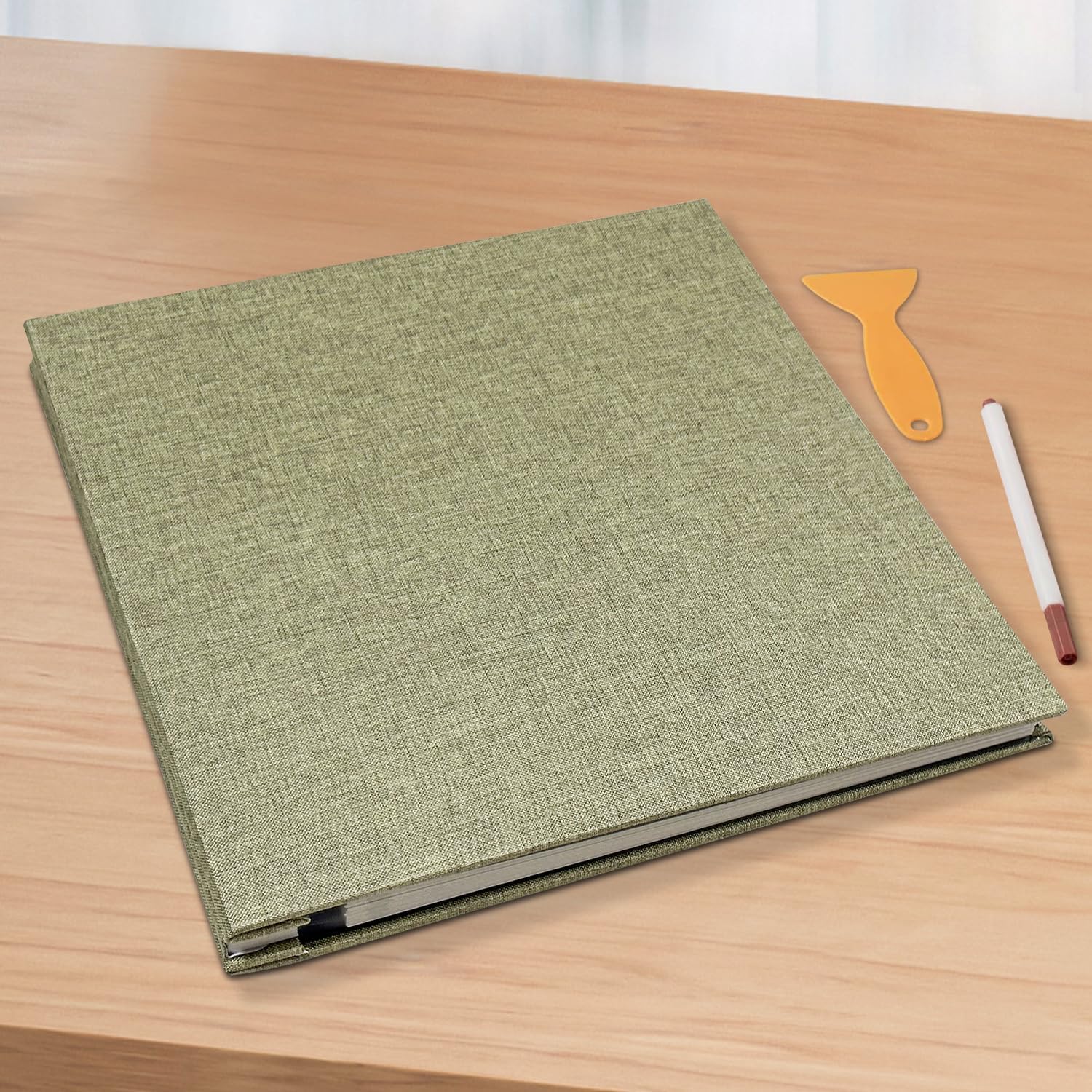Large Photo Album Self Adhesive Scrapbook Album for 4×6 5×7 8×10 Pictures DIY Magnetic Linen Cover Album 40 Pages for Family Wedding Gifts with Metal Pen and Plastic Board