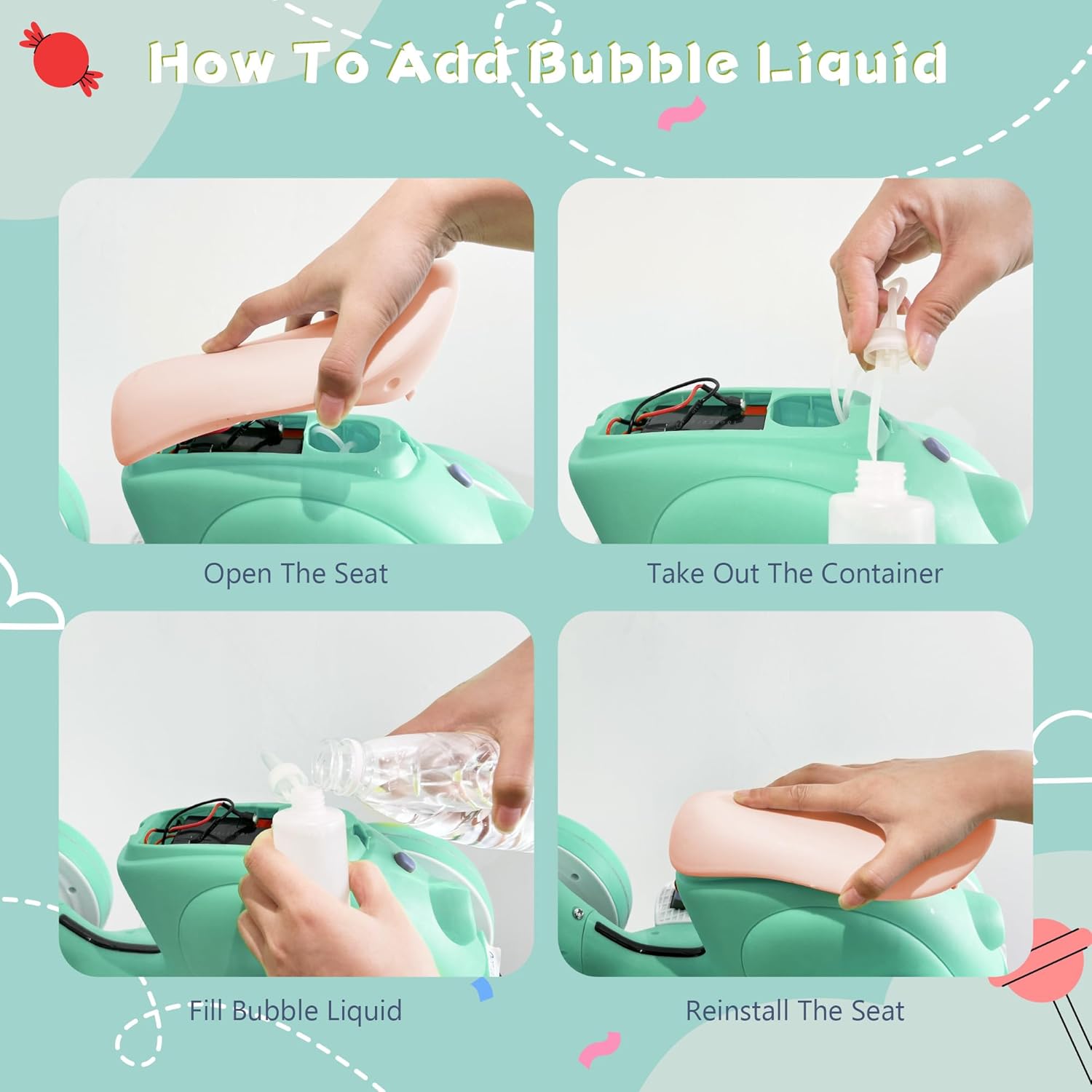 - Comfortable children's balanced motorcycle with remote control and bubble machine: Our riding toy features anti slip handles designed specifically for small hands, seats that conform to human body structure, making it more comfortable for children to sit on. The four wheels can ride smoothly on various surfaces, making it perfect for indoor and outdoor activities.
