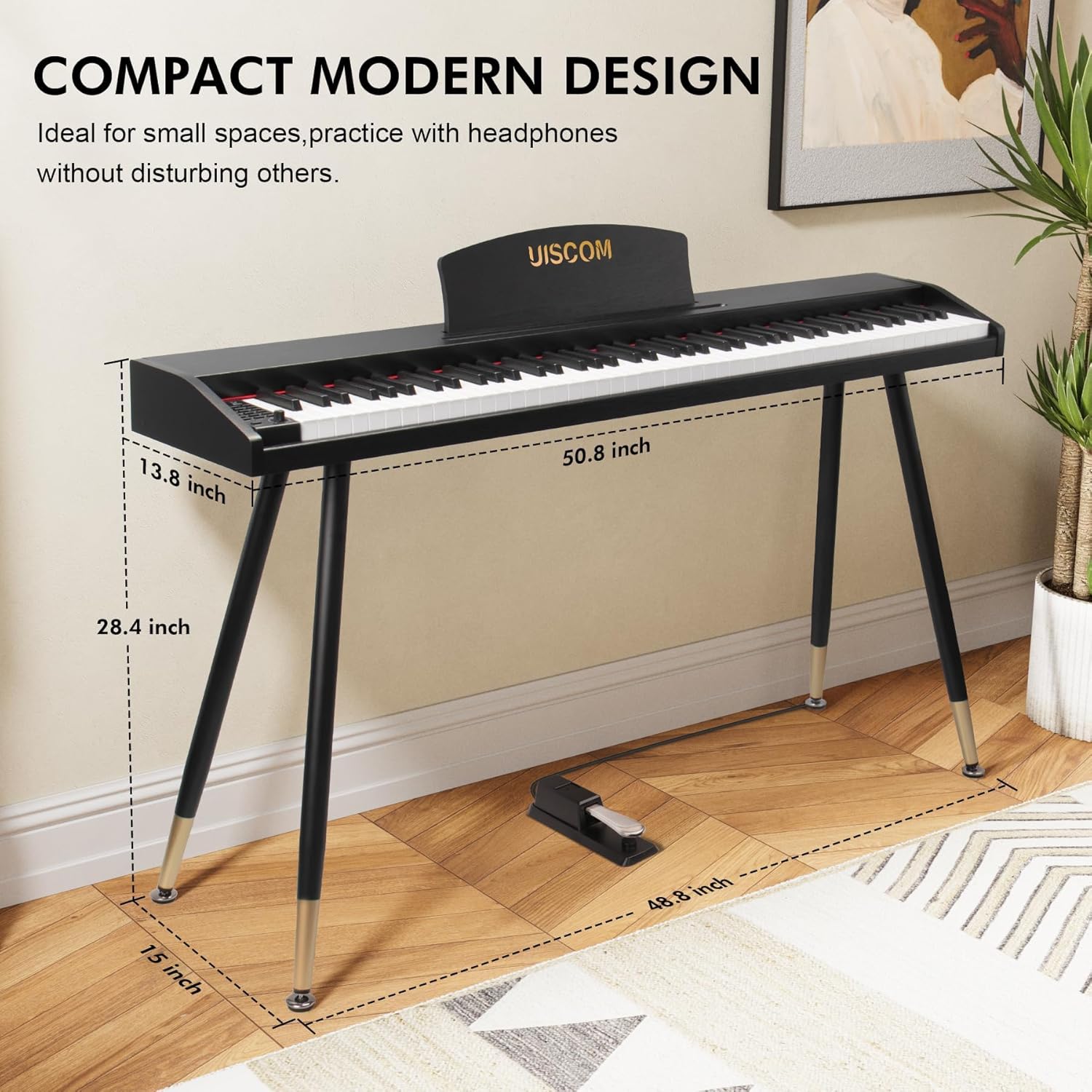 - DIGITAL PIANO SET: Full-size 88 key piano keyboard with triple pedal, music stand, headphones, music clips, piano cover and key stickers. Imitating the touch of an acoustic piano, it is perfect for beginners to explore the wonderful world of music.
