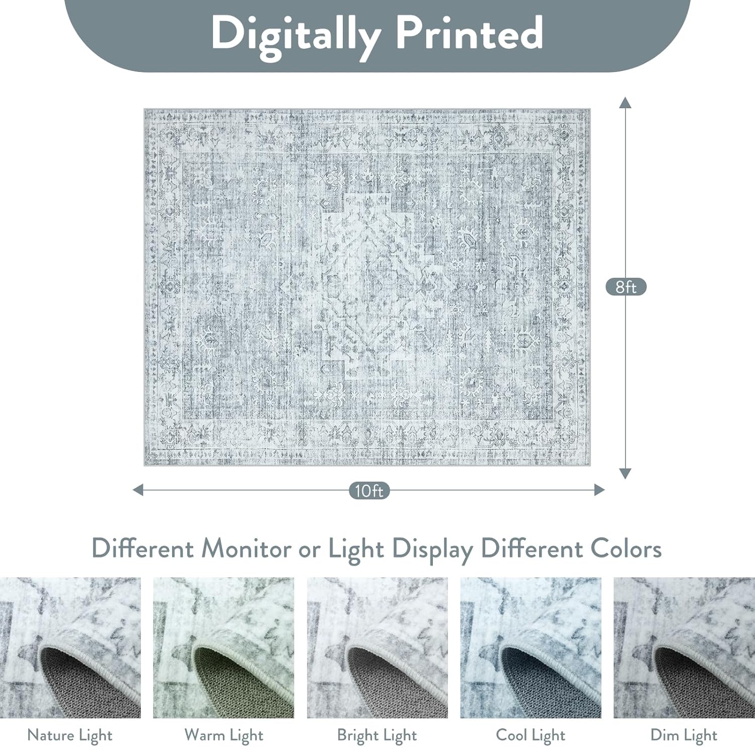 LIVEBOX Washable Area Rug 8x10 Rugs for Living Room Bedroom, Non-Slip Boho Neutral Carpet for Dining Room Office, Low-Pile Farmhouse Soft Carpets for Kids Nursery Room Playroom, Grey