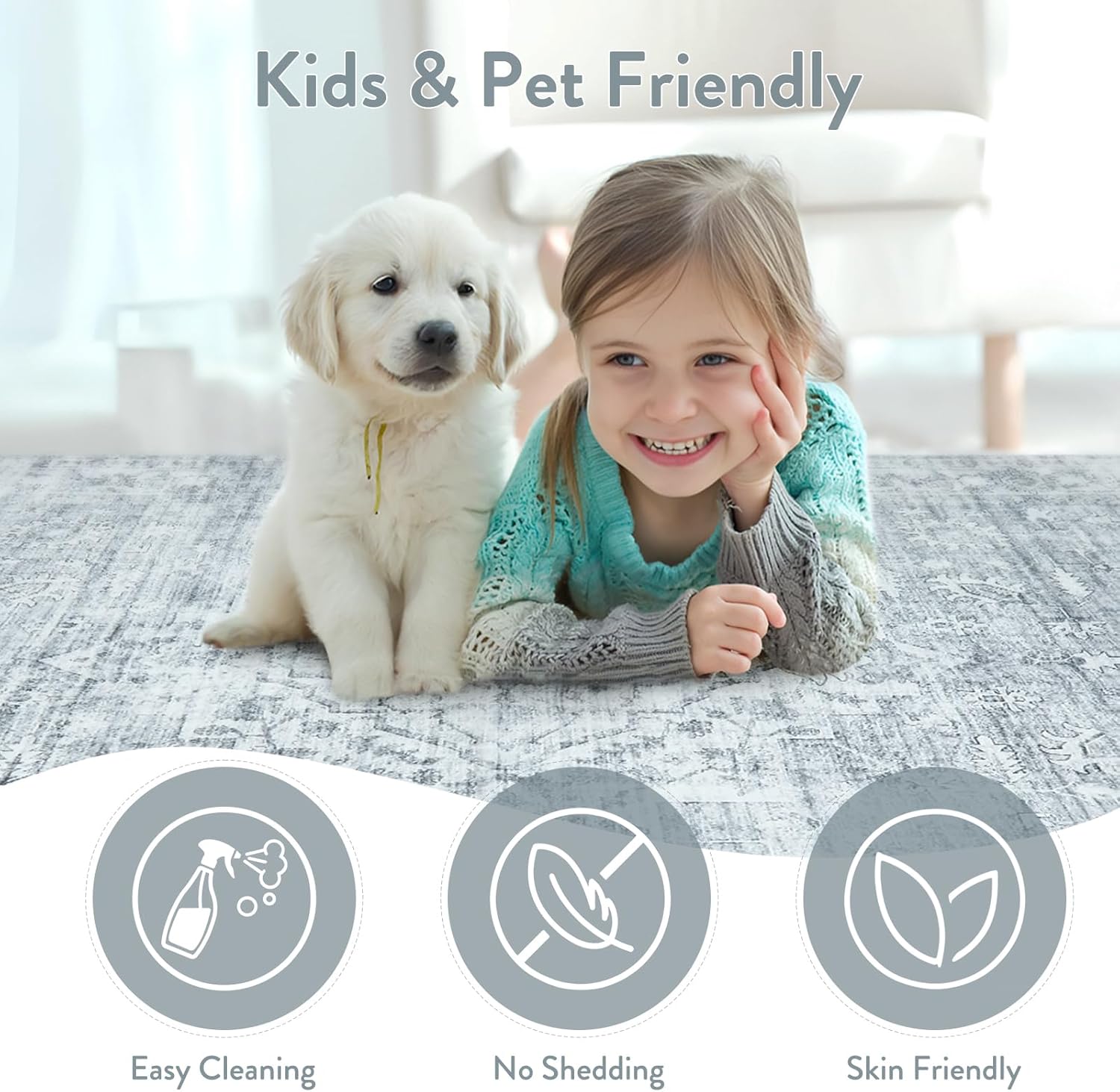 - Soft & Kid-Friendly Surface--This 5x7 area rugs boasts a low-pile, cozy surface that's soft, durable, and non-shedding, making it ideal for both children and pets. The short-pile texture ensures both comfort and practicality.
