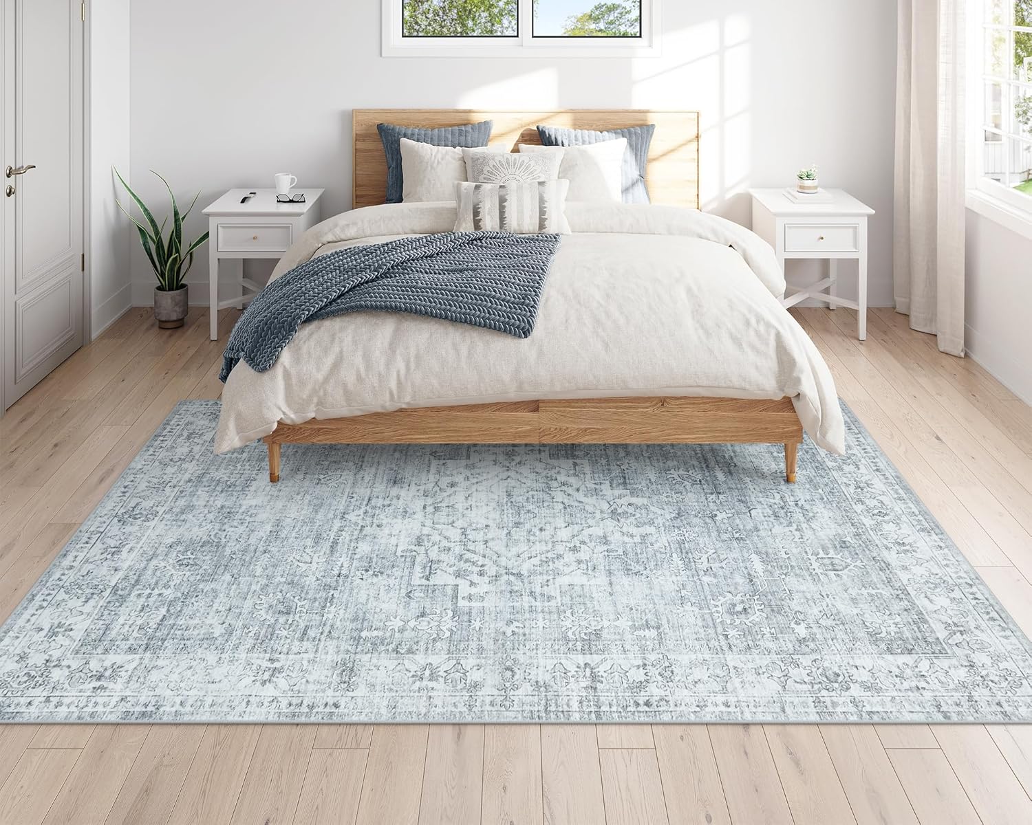 LIVEBOX Washable Area Rug 5x7 Rugs for Living Room Bedroom, Non-Slip Boho Neutral Carpet for Dining Room Office, Low-Pile Farmhouse Soft Carpets for Kids Nursery Room Playroom, Grey