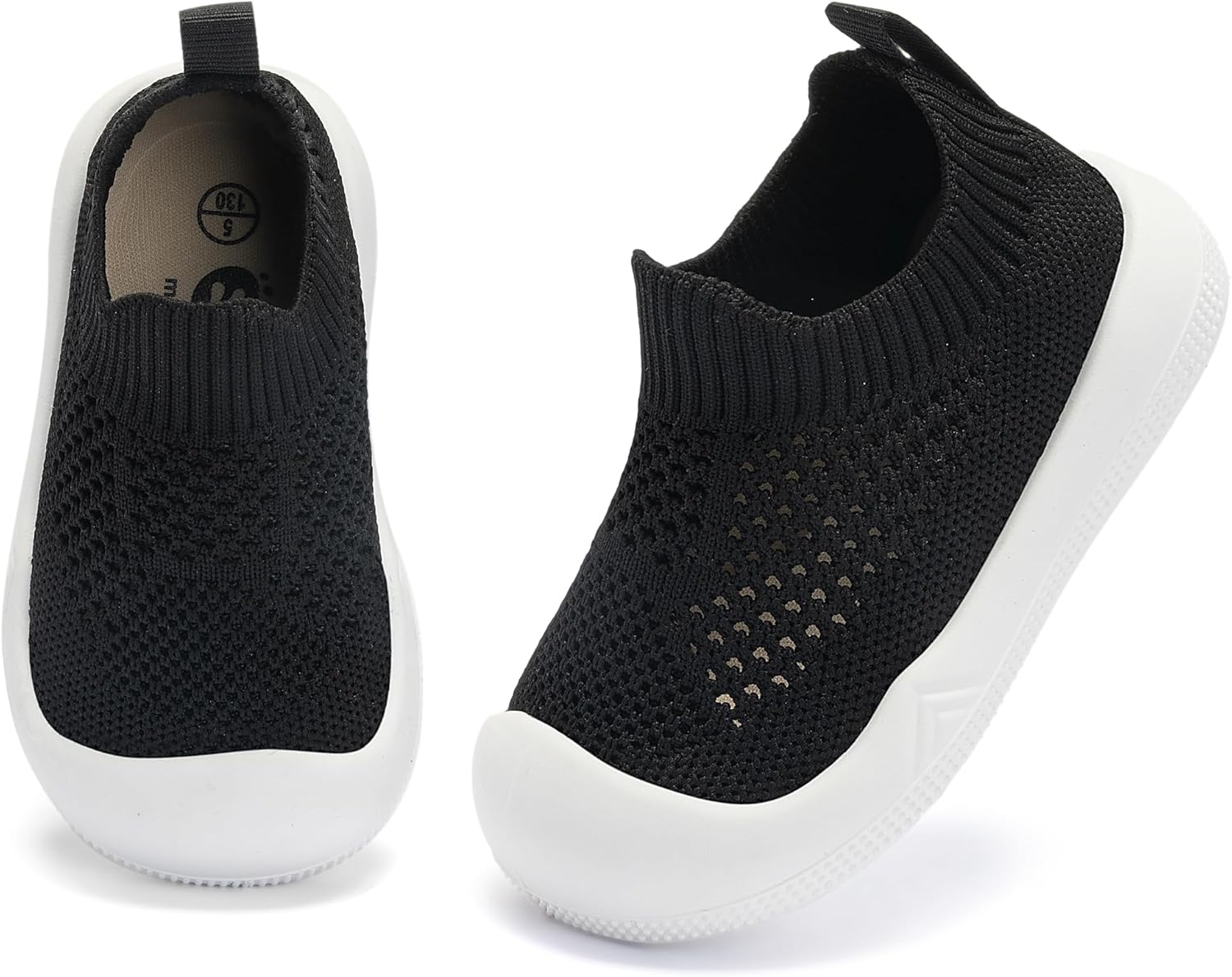 - Easy Put On:Baby walking shoes The one-piece design with stretchy knit collar only takes seconds to for you to slip them on, so babies can jump right into playtime. Toddler slip on shoes let them play in comfort while enjoying their time.