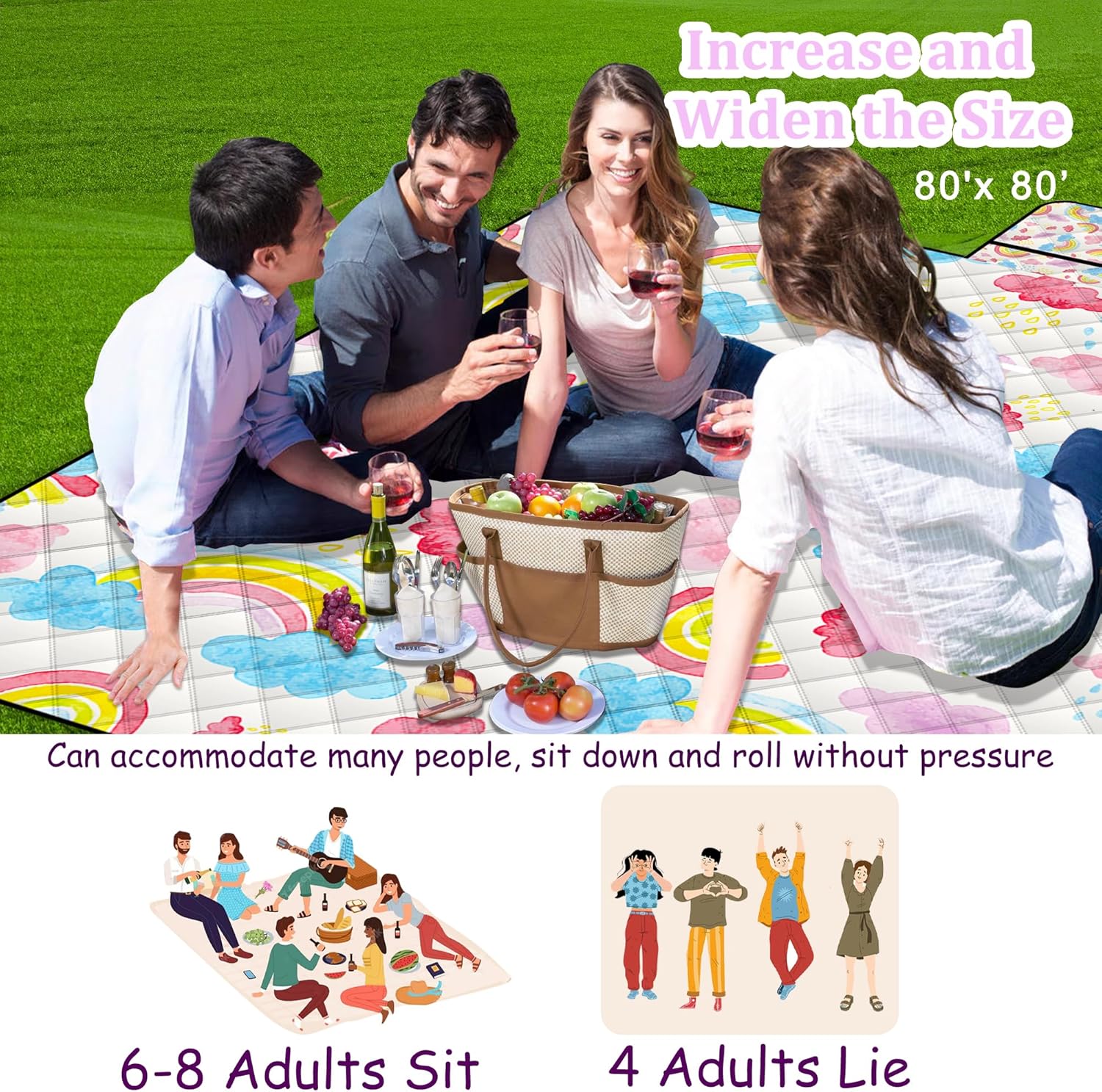 - 【🍿🍸🍹🍒🍬Larger and Thicker Design】This waterproof blanket can accommodate 6-8 people and can be used as a beach blanket,It create a designated space for family and friends to gather, eat together, play games, or simply enjoy each other's outdoors. They promote a sense of togetherness and make outdoor experiences more memorable and comfortable.