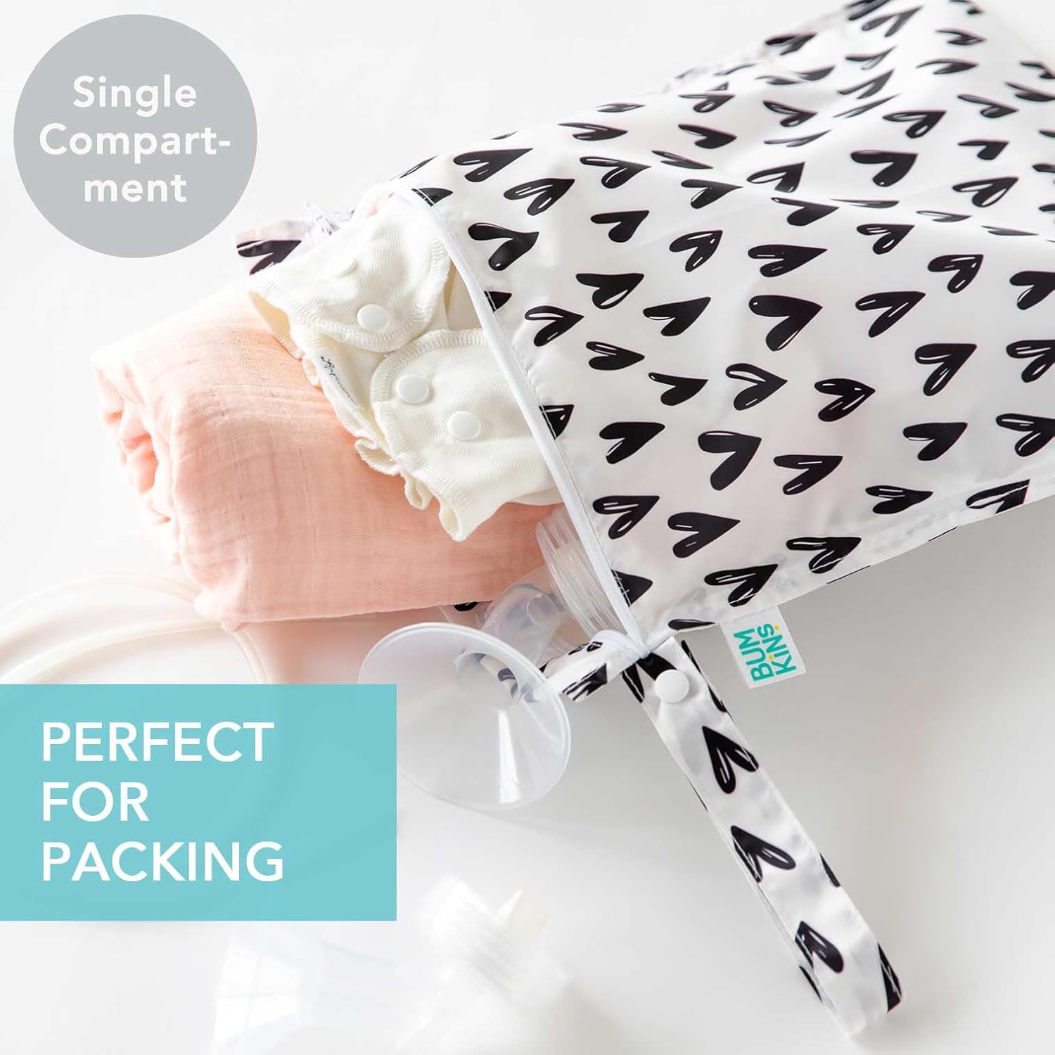 Bumkins - Waterproof Wet Bag - For Baby, Travel, Swim Suit, Cloth Diapers, Pump Parts, Pool, Gym, Toiletry, Strap to Stroller - Reusable & Easy to Clean - 2pk - Hearts & Rainbows