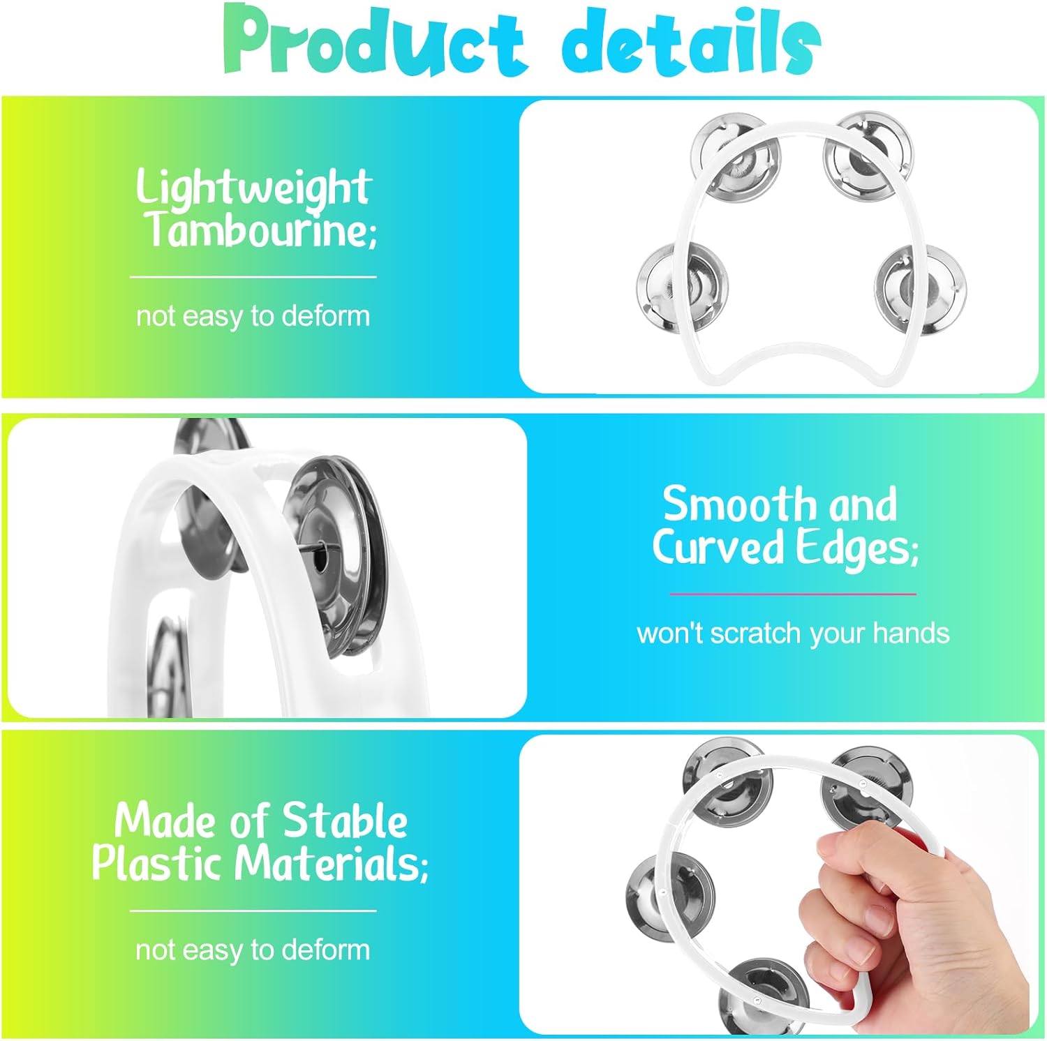 - Reliable Material Selection: these mini tambourines favors are made of stable plastic materials, not easy to break or deform, hard to fade, with smooth and curved edges, won't scratch your hands; And each tambourine contains 4 metal bells, which can create a crispy sound, providing you with a satisfying experience