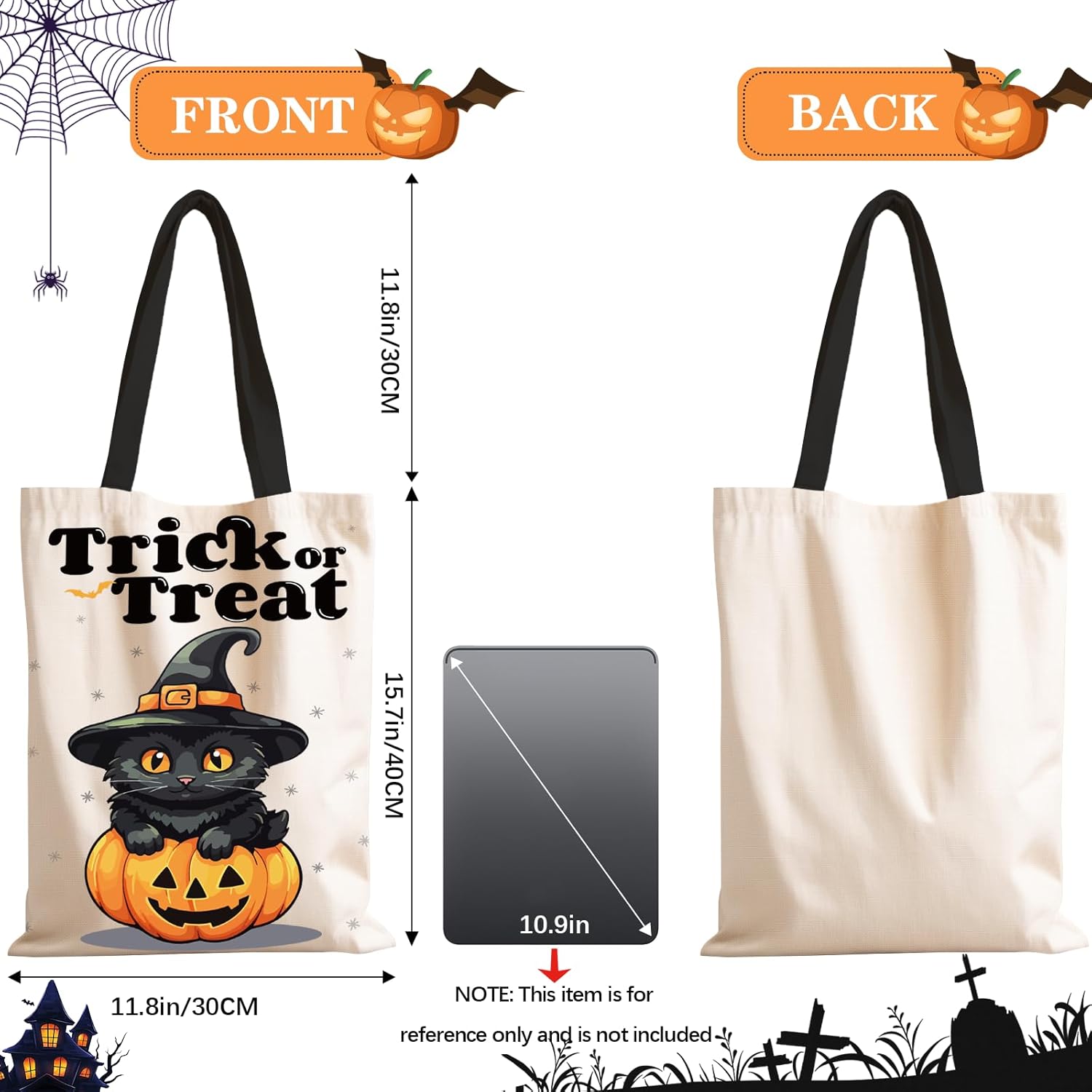TYL&TYS Halloween Treat Bags, 3Pcs Trick or Treating Bags, Halloween Candy Canvas Tote Gift Bags (Trick or Treat, Cat, Pumpkin), Reusable Grocery Boo Basket Bag for Kids