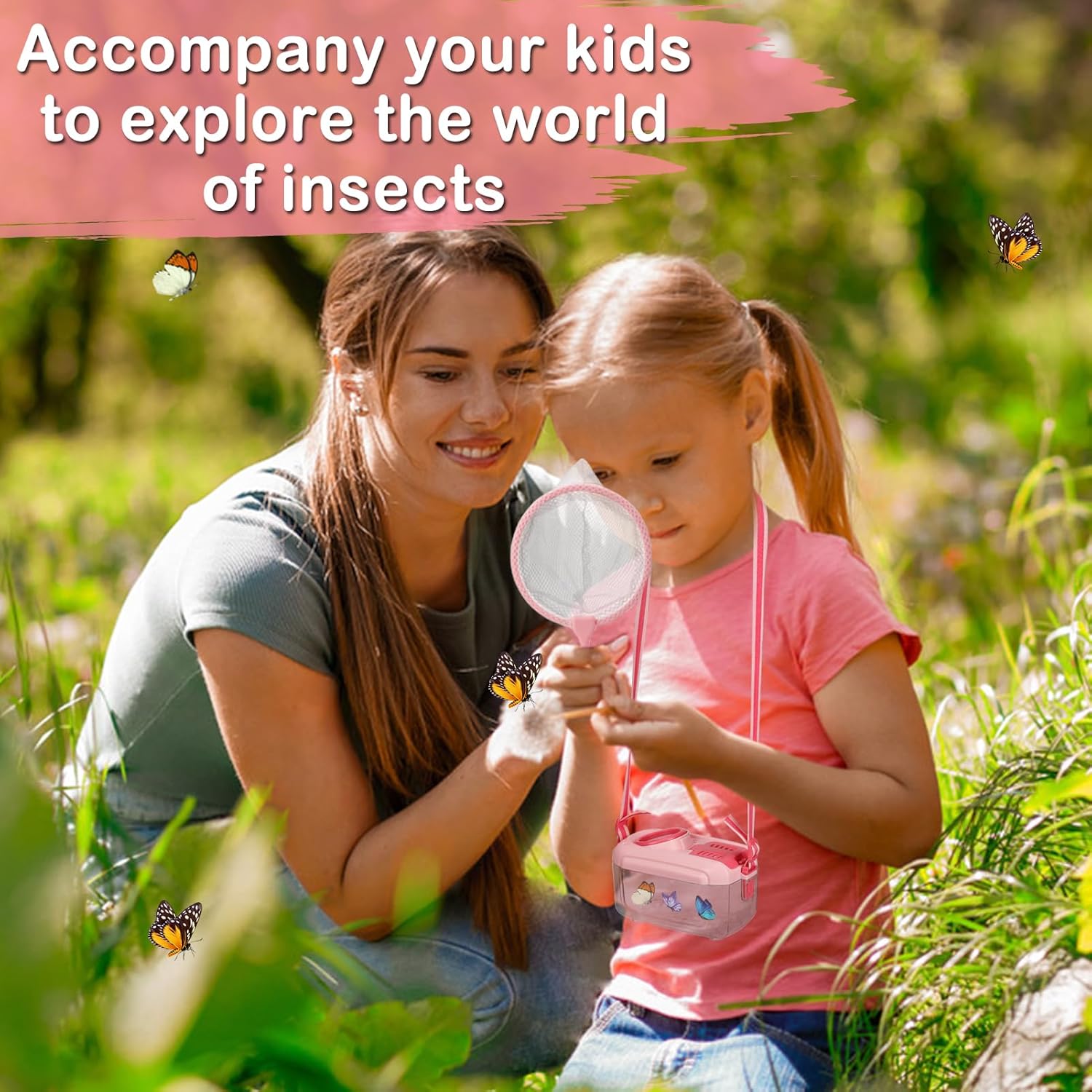 2Sets Bug Catcher for Kids- Sturdy Kids Bug Catching Kit Gifts with Collector Butterfly Net Tweezer, Bugs Habitat Outdoor Explorer Kit for Age 3 4 5 6 7 8, 8Pcs, Pink