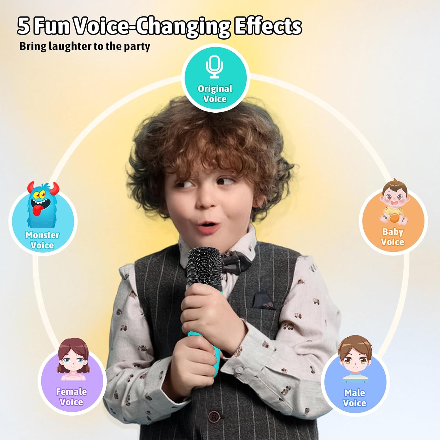 - Magic Voice and Dancing Lights: This microphone for kids transforms your voice with 5 amazing effects! It sounds like a man, woman, cute baby, scary monster! Kids will love creating adventures with different characters. Not only magic voice, but also it creates a dancing light show that pulses to the beat. It's a rainbow explosion of fun! It's the perfect way to add a touch of magic and excitement to playtime.Perfect for party entertainment