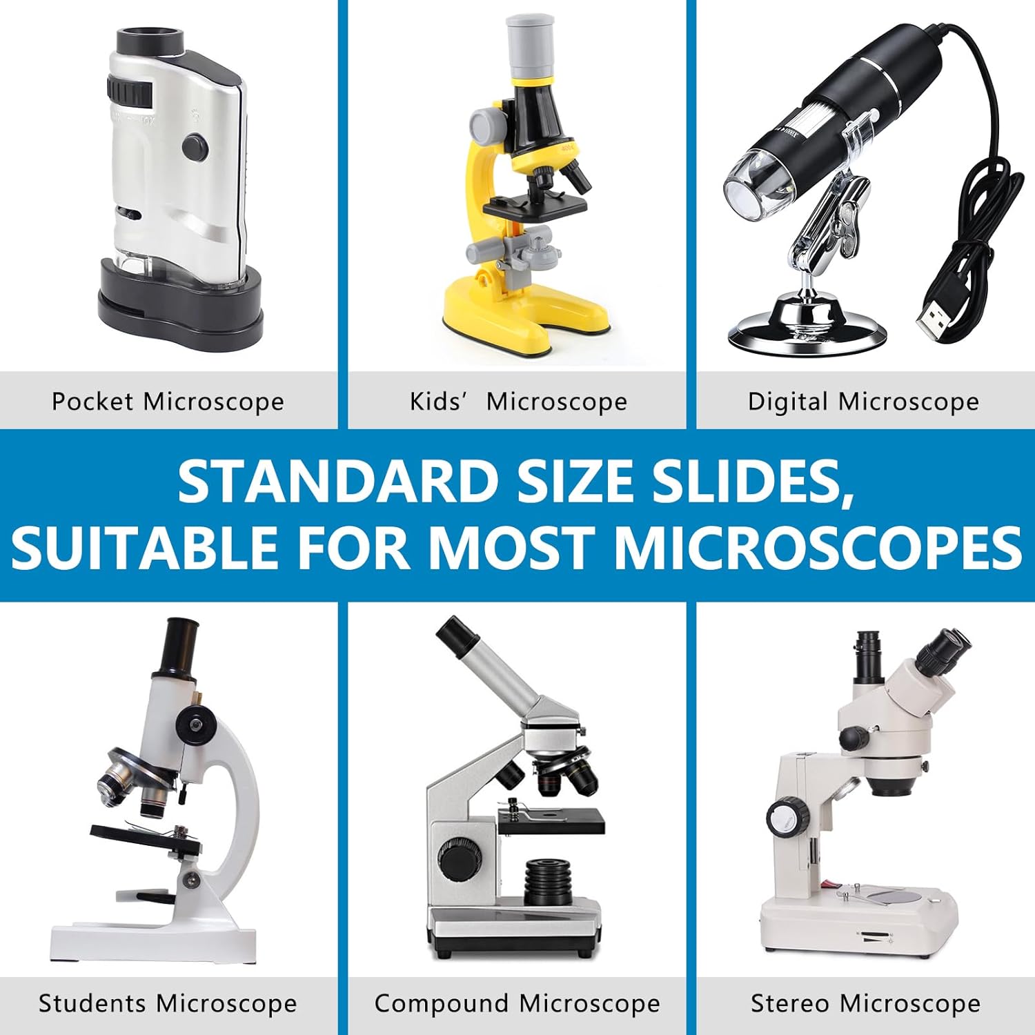 - Glass Slides Storage & Protection: Comes with a sturdy, organized case to protect the slides for microscope from damage and dust, compatible with most microscope's stage size and objectives, such as compound, stereo, digital, and pocket microscopes
