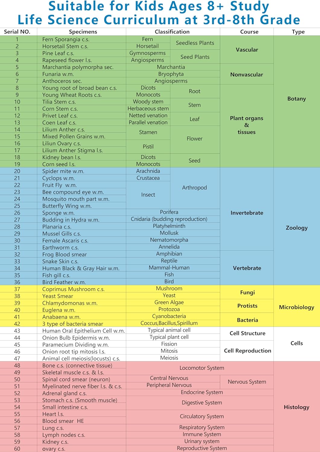 - Labeling & Identification Guide: Microscope glass slides color labels classified by course to facilitate use, clearly labeled with specimen details like name, magnification, include an identification chart guide which made this microscope accessories kit easy to dig deeper than just knowing the name of the samples