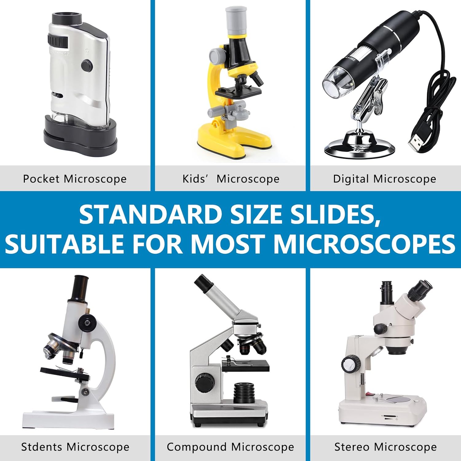- Compatible Devices : Compound Microscopes, Stereo Microscopes, USB Microscopes, kids microscopes