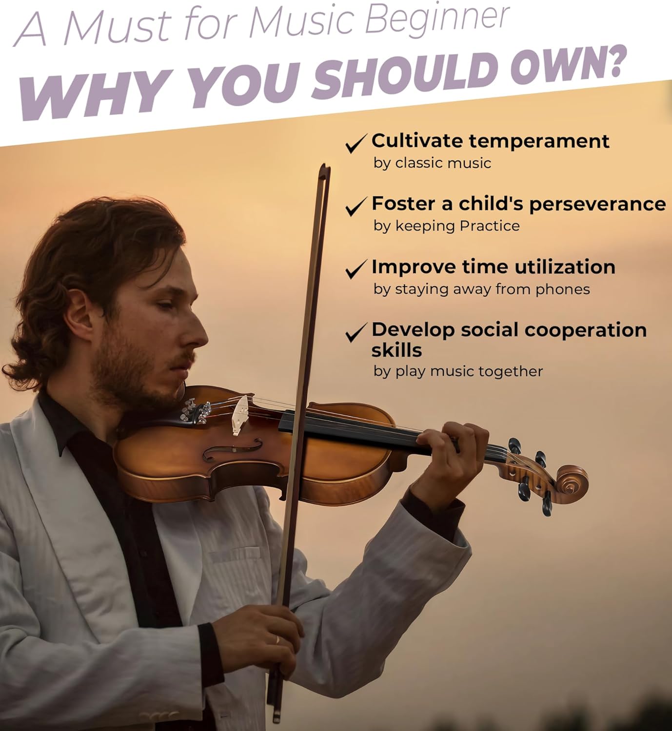 - 100% Full Solid Wood Violin Professional- Unlike rough violins made of various cheap wood, elegant handmade solidwood violin with an exquisite tiger back pattern is made of whole solid wood including a spruce top and maple back, and not only features a concave & convex touching edge, and real purfing technique keep great protection for a long time using, let alone bring back the natural and stable resonance. Not to mention all premium accessories including bow & rosin.