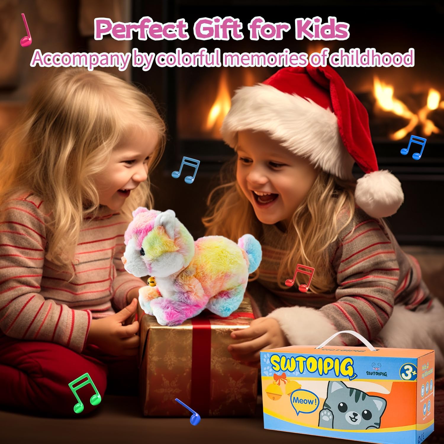 Plush Cat Stuffed Animal Interactive Cat Robot Toy, LED Robotic Cat Barking Meow Kitten Touch Control, Electronic Cat Pet, Robot Cat Kitty Toy, Animated Toy Cats for Girls Baby Kids