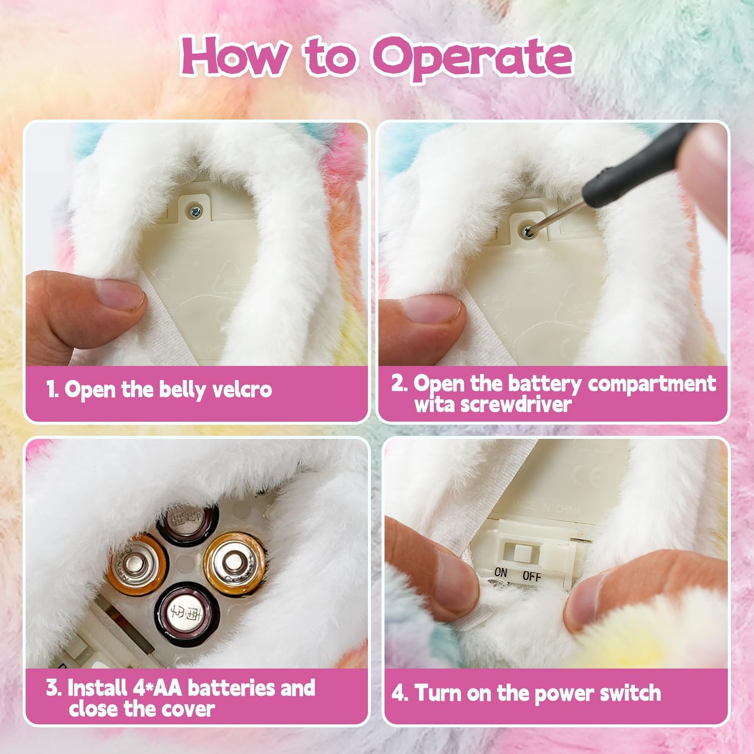 - 【I AM EASILY OPERATED】Dear master,you can let your parants help you to use a screwdriver to open the cover of the battery box (at my belly), and Load the 4 * AA batteries; adjust the switch to the [ON] position; then you can tap my body or give a handclap.That's all!TYE ME!