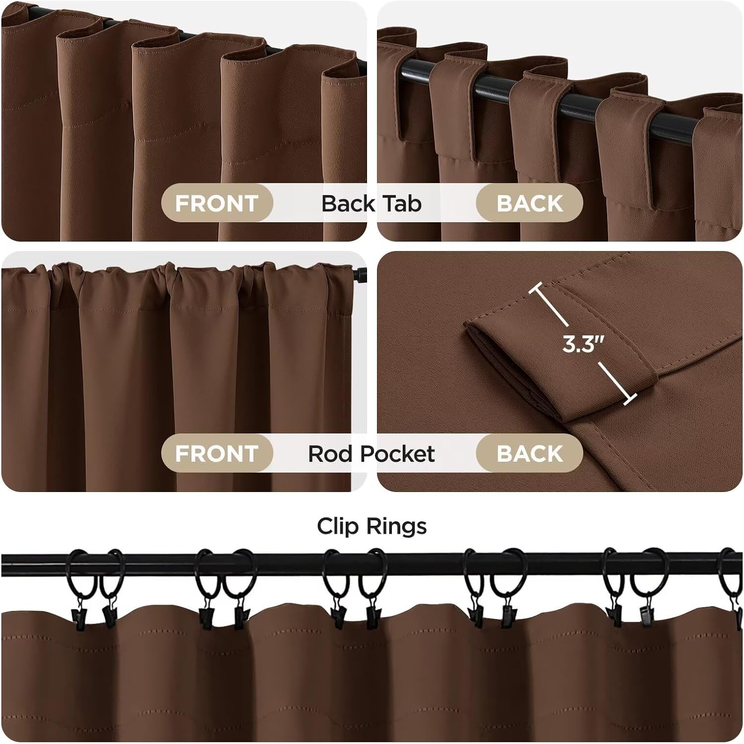 Joydeco Blackout Curtains 108 Inches Long, Thermal Insulated Black Out Curtains 2 Panels Set, Room Darkening Drapes for Living Room Window Rod Pocket Back Tab (W52 x L108 Inch, Brown)