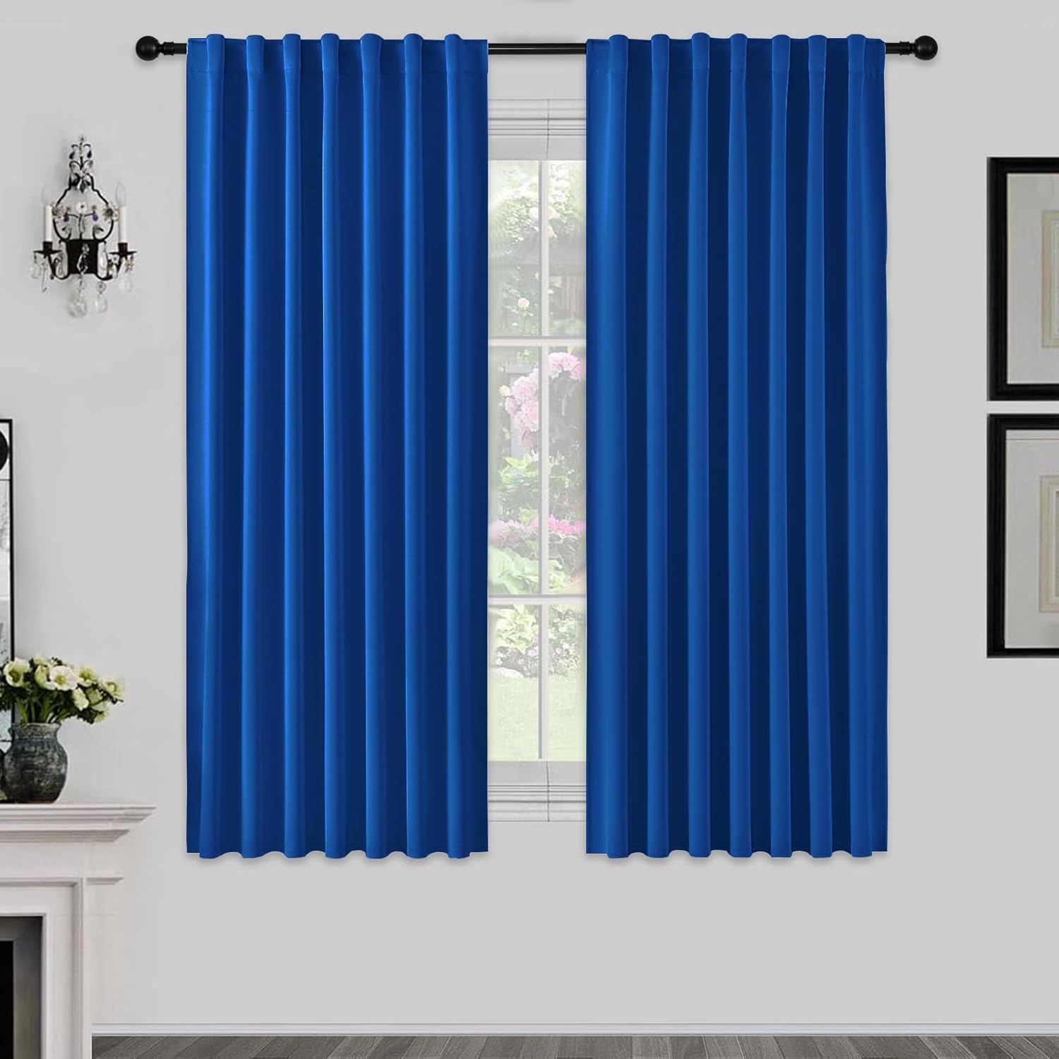 Joydeco 72 Inch Blackout Curtains for Bedroom, Thermal Insulated Black Out Curtains 2 Panels Set, Room Darkening Drapes for Living Room Window Rod Pocket Back Tab (W52 x L72 Inch, Royal Blue)