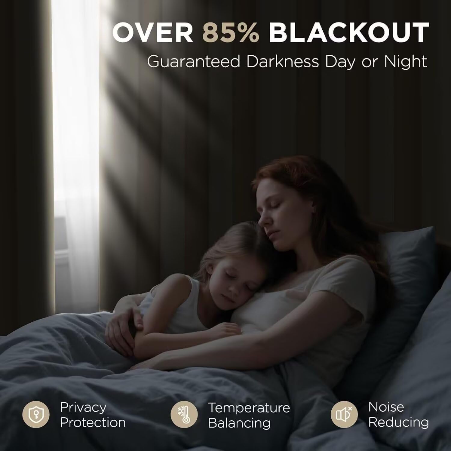Joydeco White Blackout Curtains 96 Inches Long for Bedroom, Curtains 96 Inch Length 2 Panels Set, Room Darkening Curtains & Drapes for Living Room Window (W52 x L96 Inch, Beige)