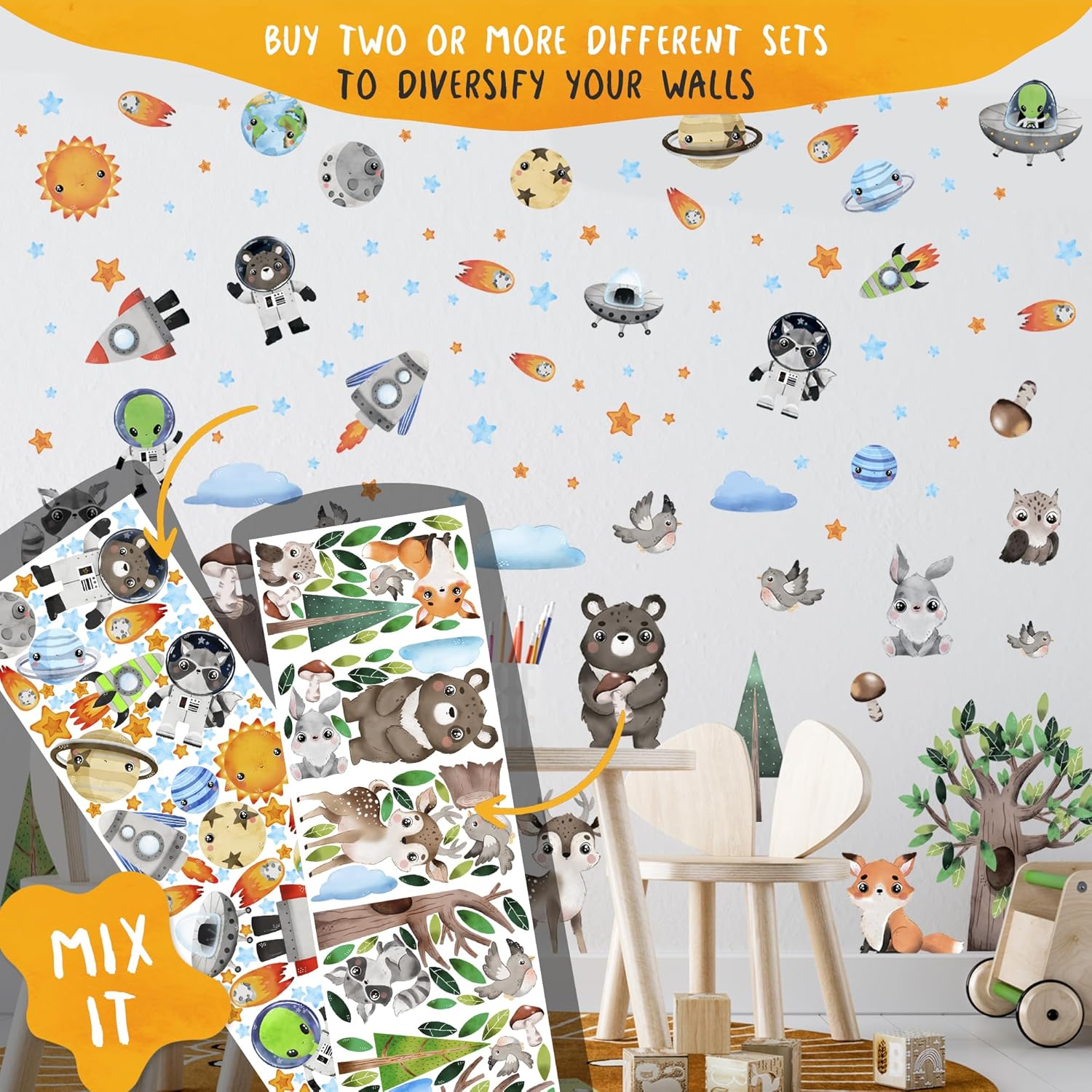 - π Easy to Apply: Animal wall decals for nursery sticks to clean, dry, and smooth surfaces like walls, windows, tiles, and furniture. Peel and stick wall decal kids for effortless decoration. Easily removable without leaving residue, allowing for repositioning or redecorating without damaging surfaces.